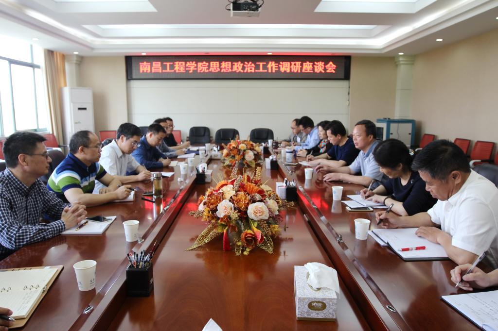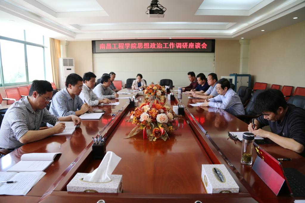 为深入贯彻落实全国和全省高校思想政治工作会议精神,全面梳理我校思想政治工作现状,着力推动我校思想政治工作的改革创新,5月10日上午和下午,学校在行政楼300会议室召开两场由党委宣传部牵头组织的思想政治工作调研座谈会。校党委书记徐兰宾出席下午的座谈会并和与会人员进行了交流互动,上午和下午的座谈会均由校党委副书记张立青主持。上午的座谈会主要邀请了有关党群部门负责人和研究生处、各学院党委(总支)书记、副书记参加,下午的座谈会主要邀请了有关行政部门负责人和各学院(部)的院长、副院长(副主任)参加。