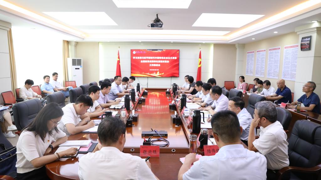 7月12日下午,学校学习贯彻习近平新时代中国特色社会主义思想主题教育调研成果转化暨整改整治工作推进会在行政楼300会议室召开。省委主题教育第十一巡回指导组组长喻晓社出席会议并讲话。校党委书记、校党委主题教育领导小组组长汪胜前主持会议。省委主题教育第十一巡回指导组成员,学校党委领导班子成员出席会议。
