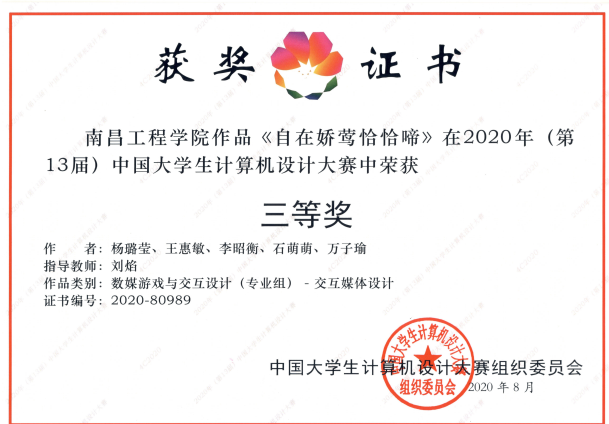 我校组建了来自信息工程学院、人文艺术学院的10支代表队,先后参加山东大学和厦门大学线上承办的软件应用与开发、数媒动漫与微电影(专业组)、数媒动漫与微电影(普通组)、数媒游戏与交互设计(专业组)、数媒中华优秀民族文化元素(专业组)5大类别作品比拼,经过预赛、决赛的激烈角逐,从全国各高校选送的1000余件作品中脱颖而出,斩获佳绩。(文/图 雷金娥)