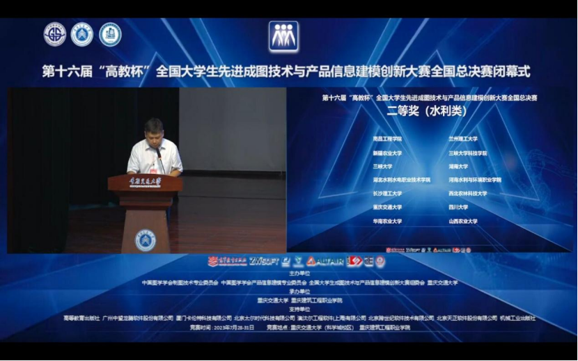7月28日至31日,第十六届“高教杯”全国大学生先进成图技术与产品信息建模创新大赛(以下简称“成图大赛”)在重庆交通大学科学城赛区举办。经过激烈角逐,我校代表队获得全国总决赛团体二等奖(水利类),个人全能一等奖2项、二等奖5项、三等奖3项。