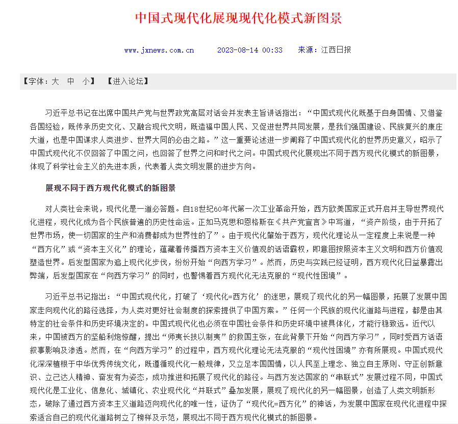 近日,《江西日报》理论版刊发我校马克思主义学院陈付龙教授的理论文章《中国式现代化展现现代化模式新图景》。