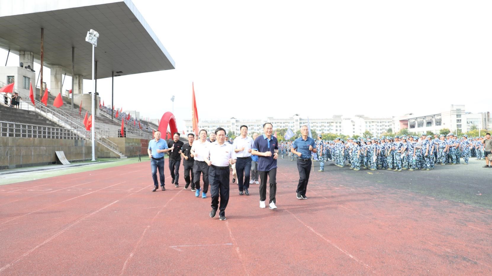 汪胜前宣布“南昌工程学院2023级新生军训行军拉练活动”开始。随着一声发令枪响,开启了本次新生军训行军拉练活动。校领导参与到拉练活动中,与全体军训同学在校园里形成了一道靓丽的风景线。