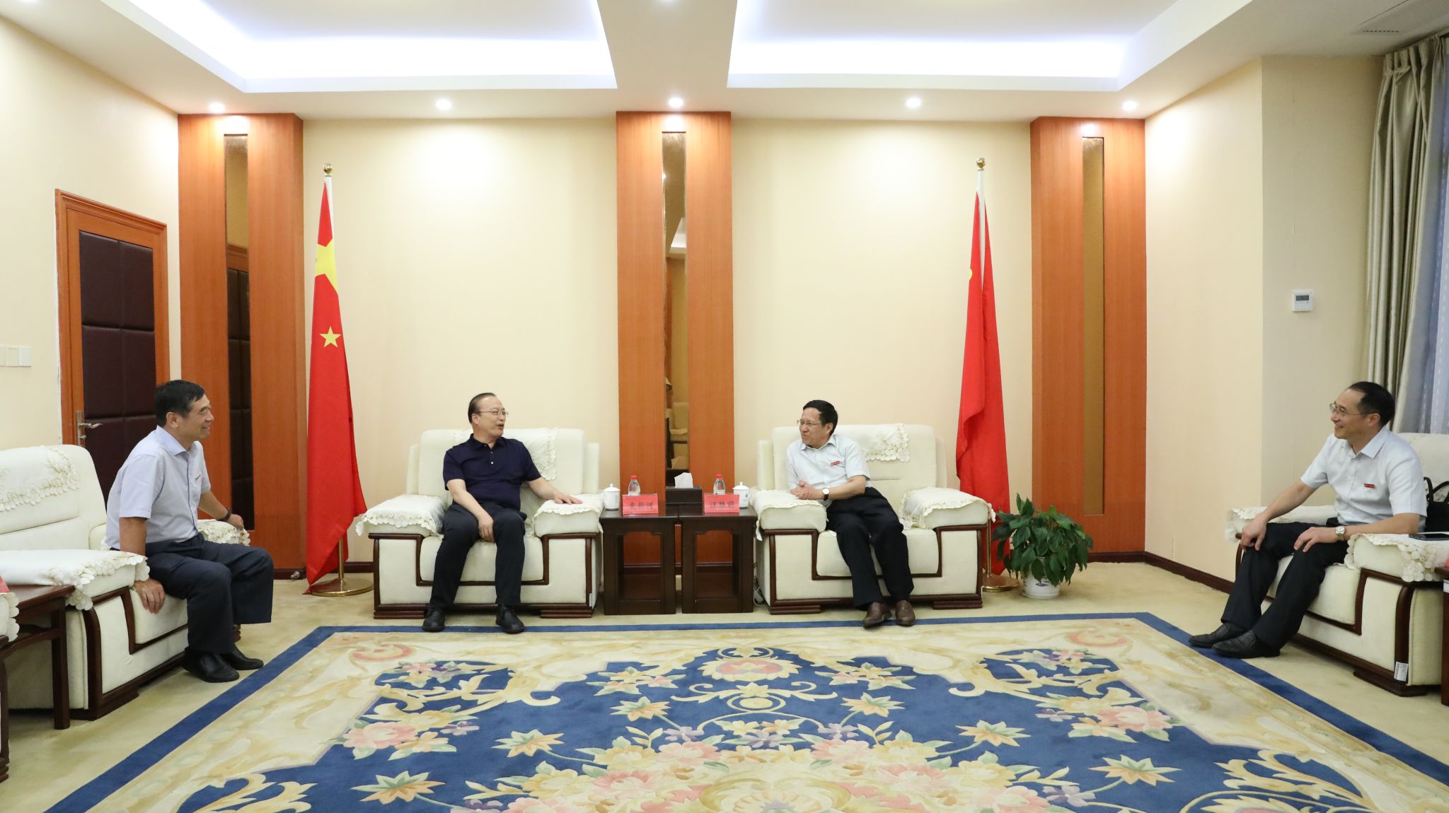 9月21日,校党委书记汪胜前、校长刘祖文、校党委副书记吴泽俊在行政楼318会议室会见应邀出席我校2023级新生开学典礼的1991级水工专业优秀校友袁新河。