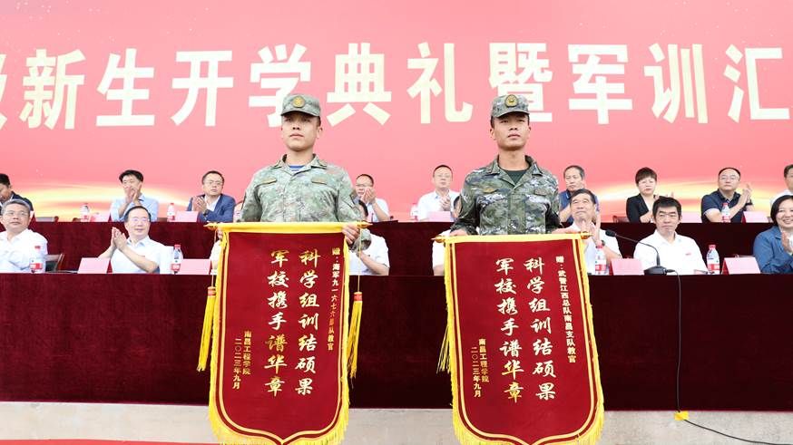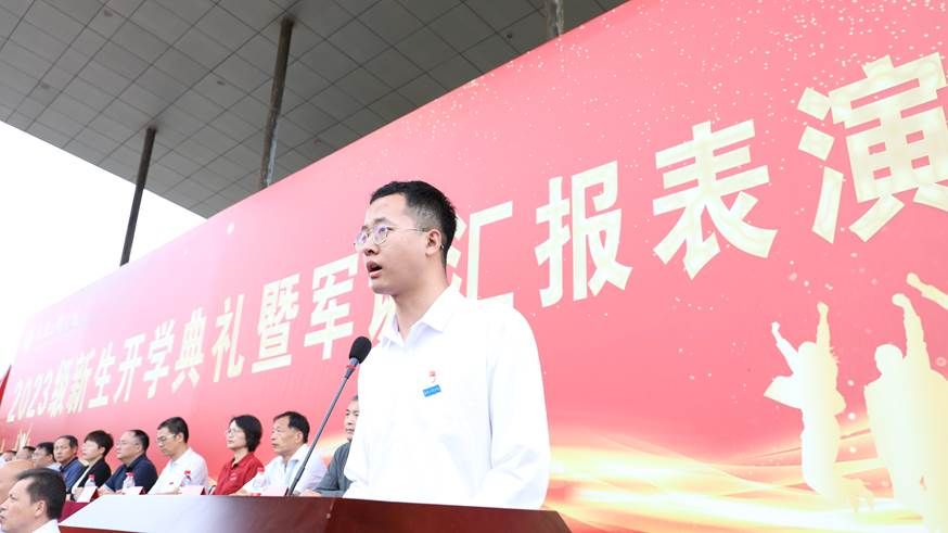 9月22日上午,学校在瑶湖校区田径场举行2023级新生开学典礼暨军训汇报表演。校党委书记汪胜前,校长刘祖文,校友代表、天津市人民政府驻北京办事处党组书记、主任袁新河,中国人民解放军海军某部兰京上尉,武警江西总队南昌支队戴淼鑫中尉及学校党政领导班子成员出席活动,校党委副书记吴泽俊主持仪式。学校相关职能部门负责人、各学院(部)负责人、师生代表及2023级全体新生参加活动。