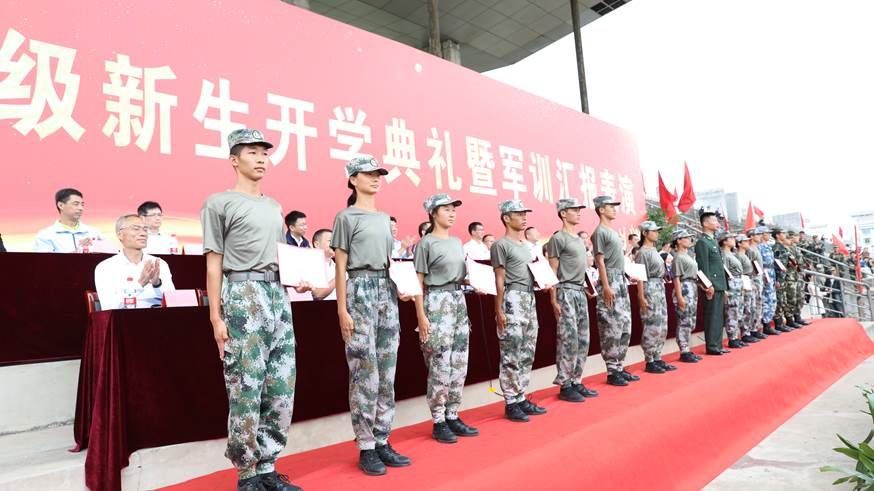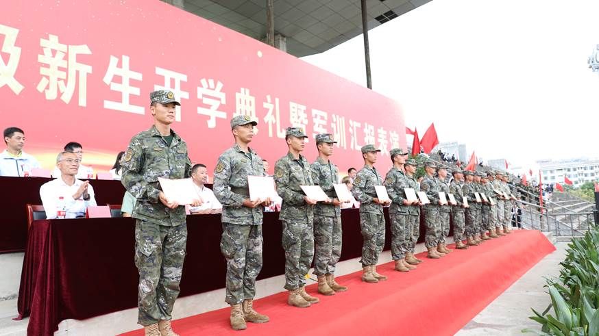 典礼上,副校长陆伟锋宣读《关于2023级新生军训的表彰决定》,校领导为新生军训优秀学员、优秀大学生教官、优秀部队教官颁奖。2023级新生精神饱满、意气奋发进行军训成果汇报表演。