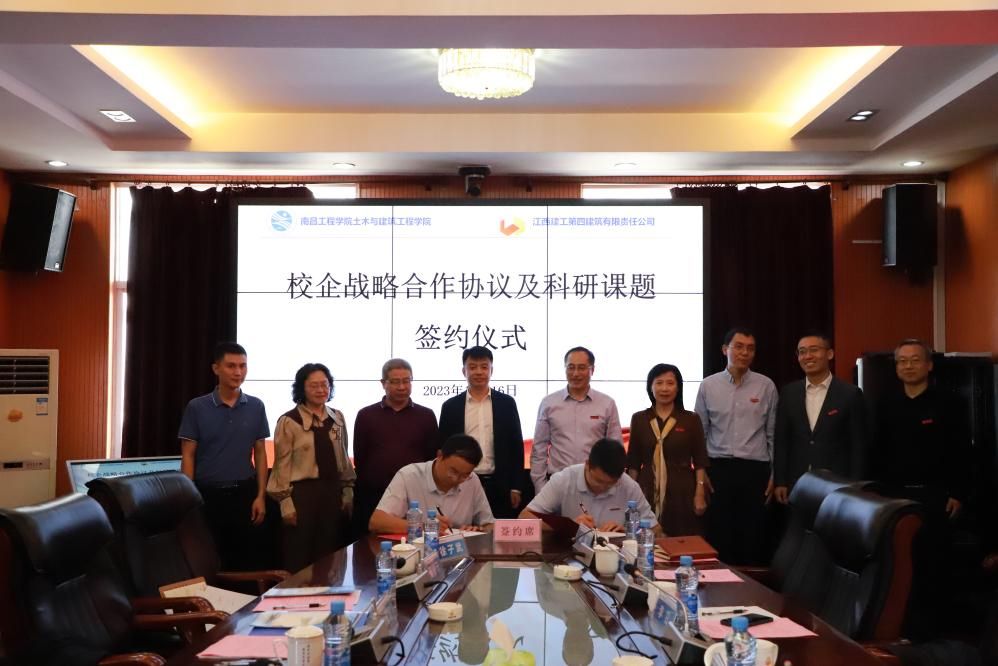 10月16日,校长刘祖文率土木与建筑工程学院相关负责人、教师代表到江西建工第四建筑有限责任公司开展访企拓岗活动。江西省建工集团有限责任公司总工程师李新刚,江西建工第四建筑有限责任公司党委书记、董事长刘建城等公司领导以及部分校友出席活动。