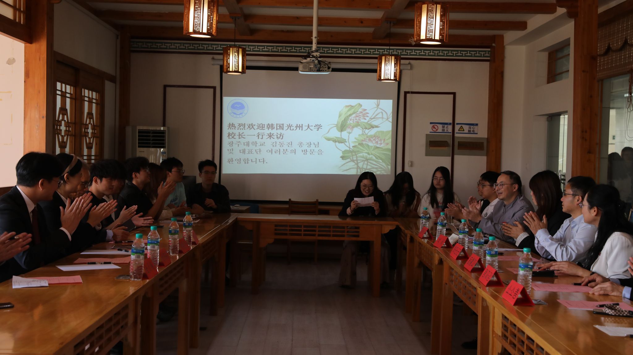 10月23日,韩国光州大学校长金东振率代表团一行来我校访问。校党委书记汪胜前会见了代表团。校长刘祖文与金东振一行座谈。副校长李培生、贺丹君及相关部门负责人参加。