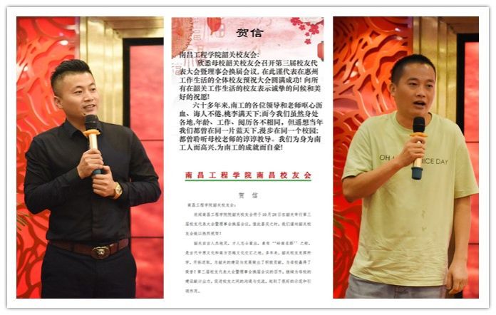 张华表示,韶关校友会将不辜负母校和校友们的信任和重托,勇于担起责任和义务,尽心尽力做好校友会工作,为校友发展、母校发展和地方经济社会发展作出积极贡献。荣誉会长詹云峰、新任副会长代表刁志军(2004级注册会计师专业)、新任秘书长康小冬(2004级水利水电工程专业)分别致词。