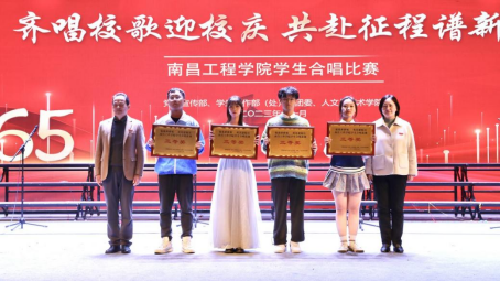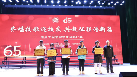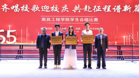 活动自10月启动以來,各学院充分利用晚自习、校园广播开展班级学唱活动,广泛宣传校歌官微推文,邀请师生教唱队教唱,编排不同表演形式,充分展现学院特色,以饱满的精神状态和深情嘹亮的歌声喜迎校庆、歌唱学校。“天祥紫阳耀,赣鄱舞波涛……”比赛最后,全场齐唱校歌《上善之道》,向南昌工程学院65周年华诞致以最诚挚的祝福。