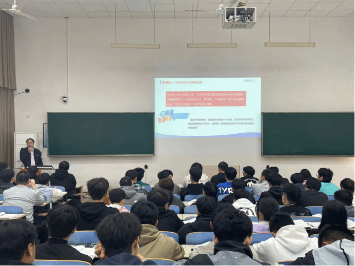 课堂上,刘祖文以习近平总书记考察江西和省长叶建春在南昌工程学院调研等为切入点,深入浅出地为学生们讲解了教育强国、科技强国和人才强国的重要意义。他强调,作为新时代的青年学生,要立大志、明大德、成大才、担大任,要始终保持对国家和社会的关注,不断提高自身的政治素养和综合素质,为实现中华民族的伟大复兴贡献自己的力量。刘祖文还与学生们进行了互动交流,建议大家合理安排好学习和生活时间,要积极思考、勇于表达,不断提高自己的思维能力和创新能力。