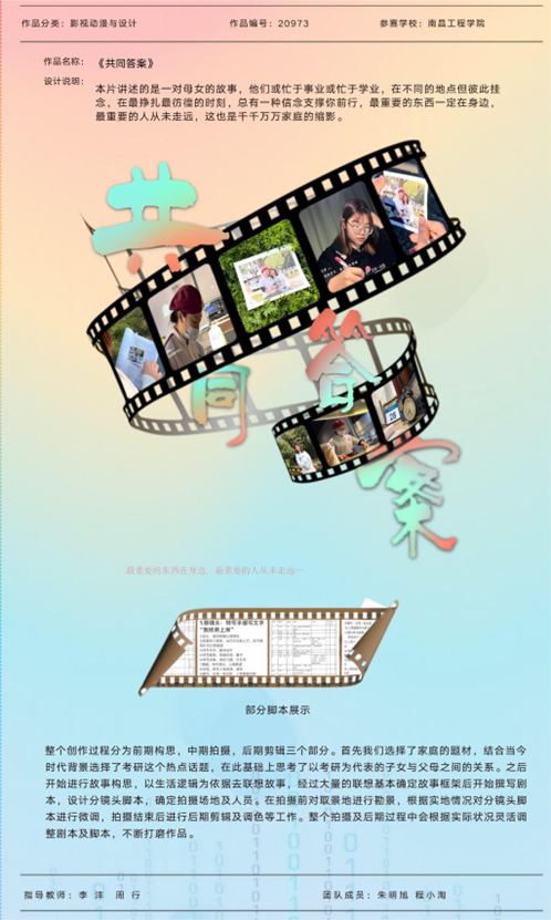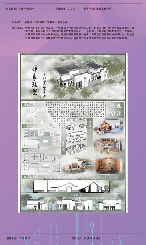 全国大学生数字媒体科技作品及创意竞赛为中国高等教育学会大学生学科竞赛排行榜单中备受认可的赛事之一。为推出优秀作品,人文与艺术学院组织专业教师悉心指导学生创作,经过校赛评审,最终精选72件作品参赛,获奖率为46%,获奖质量与数量均为历年之最。其中《景德镇“印象瑶里”服务中心环境设计》为江西省唯一一个人居环境国家一等奖作品。