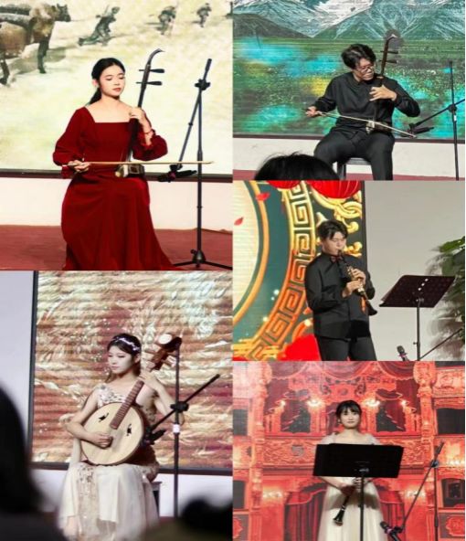 此次音乐会共演出三场,分别为“大音希声”器乐专场、“歌以风华”声乐专场、“韶华倾负,声生不息”声乐专场。李海博等15位同学带来的古筝、二胡、单簧管、中阮独奏为第一场音乐会带来了深情厚意的演绎,犹如一幅绚烂的音乐画卷,弦乐器的柔和旋律与鼓乐器的激情节奏交织在一起,仿佛在诉说着音乐的故事。郭腾等14位同学带来的声乐作品,让观众置身歌声与音符的奇幻世界,每位同学的演绎都似一颗明珠,闪烁着独特的光芒。李鑫等19位同学带来的声乐作品,旋律流畅而富有旋律性,节奏明快有力,给人以积极向上、热情洋溢的感觉。