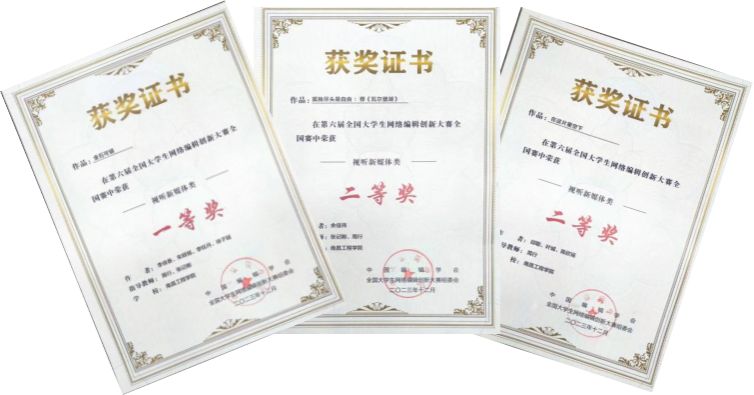 2021级编辑出版学专业李佳香、徐子越和2021级数字媒体艺术专业朱明旭、李钰月制作的非遗传承主题作品《金石可错》获得“视听新媒体类”全国一等奖;2023级出版专业硕士研究生余佳玮创作的图书推荐作品《孤独尽头是自由:荐〈瓦尔登湖〉》和2020级网络与新媒体专业邱聪、叶城、陈欣瑶创作的乡村振兴主题作品《在这片星空下》荣获“视听新媒体类”全国二等奖。