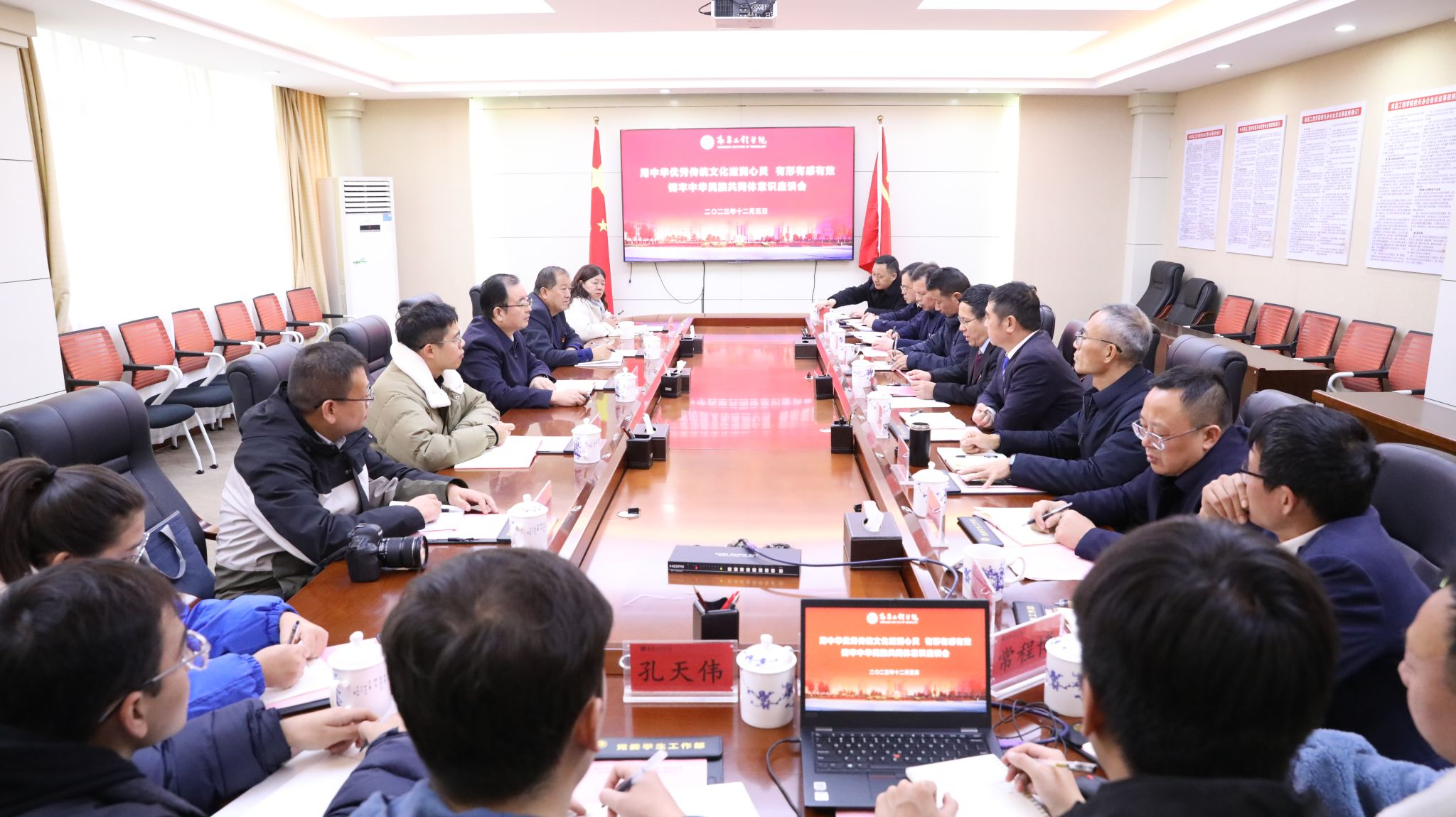 12月5日下午,省委政法委副书记翟少勇一行来校走访调研。学校在行政楼300会议室召开“用中华优秀传统文化滋润心灵 有形有感有效铸牢中华民族共同体意识”座谈会。校党委书记汪胜前,校党委副书记吴泽俊,校党委委员、宣传部长洪恩强,校党委委员、统战部长欧阳子龙出席会议,驻江西省教育协调工作小组相关工作人员、我校相关职能部门负责人及新疆籍学生代表参加座谈。会议由副校长卢全国主持。