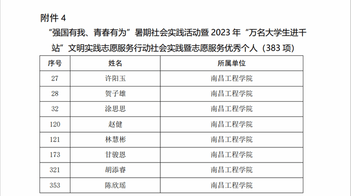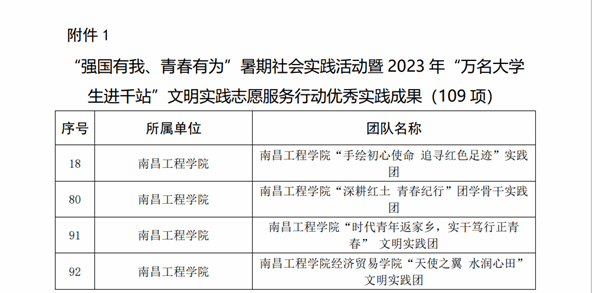 近日,由省委宣传部、省文明办、省教育厅、团省委联合开展的“强国有我、青春有为”暑期社会实践活动暨2023年“万名大学生进千站”文明实践志愿服务行动评审结果揭晓,我校喜获多项表彰。