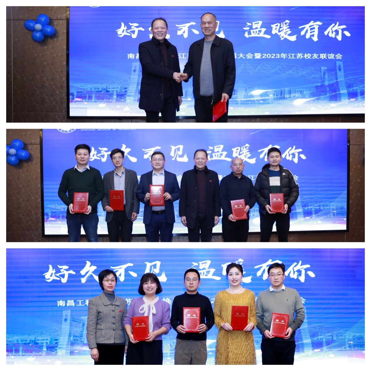 好久不见,温暖有你。12月16日,南昌工程学院江苏校友会换届大会暨2023年江苏校友联谊会在南京举行。副校长张兴旺,校友服务中心负责人及60余位江苏校友、省外校友会代表联谊畅谈,共谋发展。
