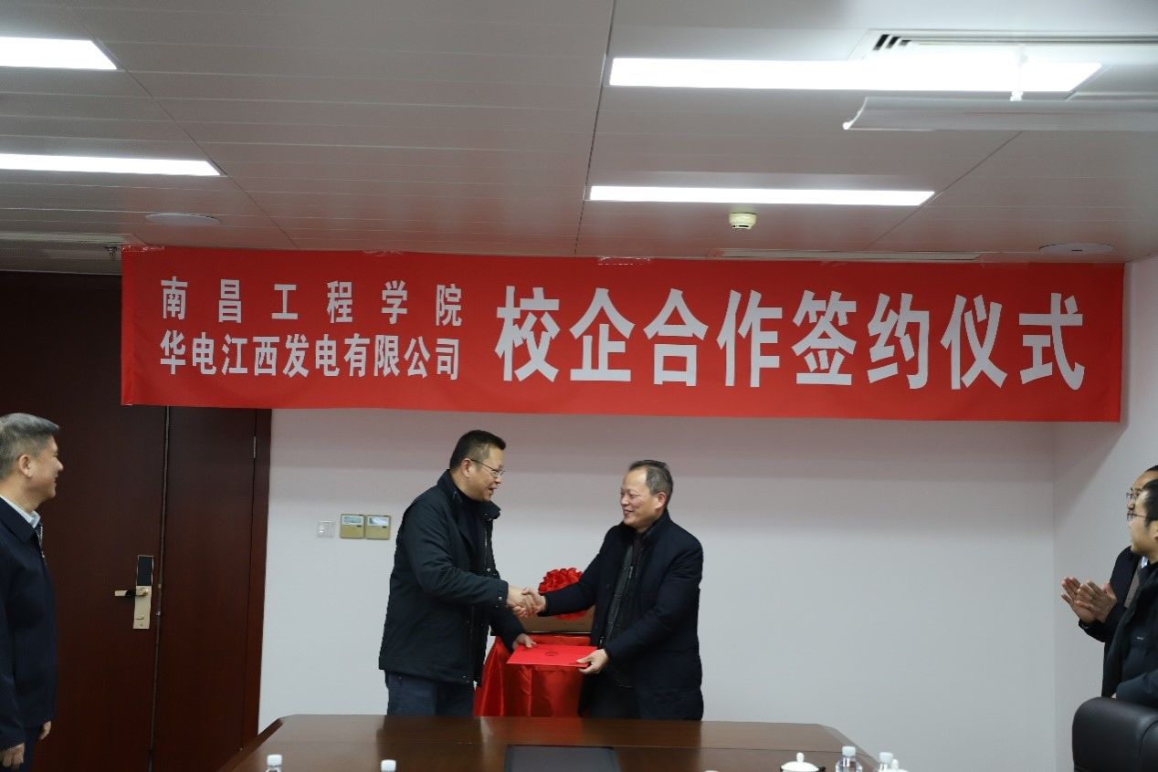 刘祖文与李前锋共同为南昌工程学院——华电江西发电有限公司研究生联合培养工作站揭牌。贺丹君与盛先跃代表双方签署了校企产学研合作协议和研究生联合培养工作站协议。张兴旺为华电江西发电有限公司技术专家颁发硕士研究生校外导师聘书。