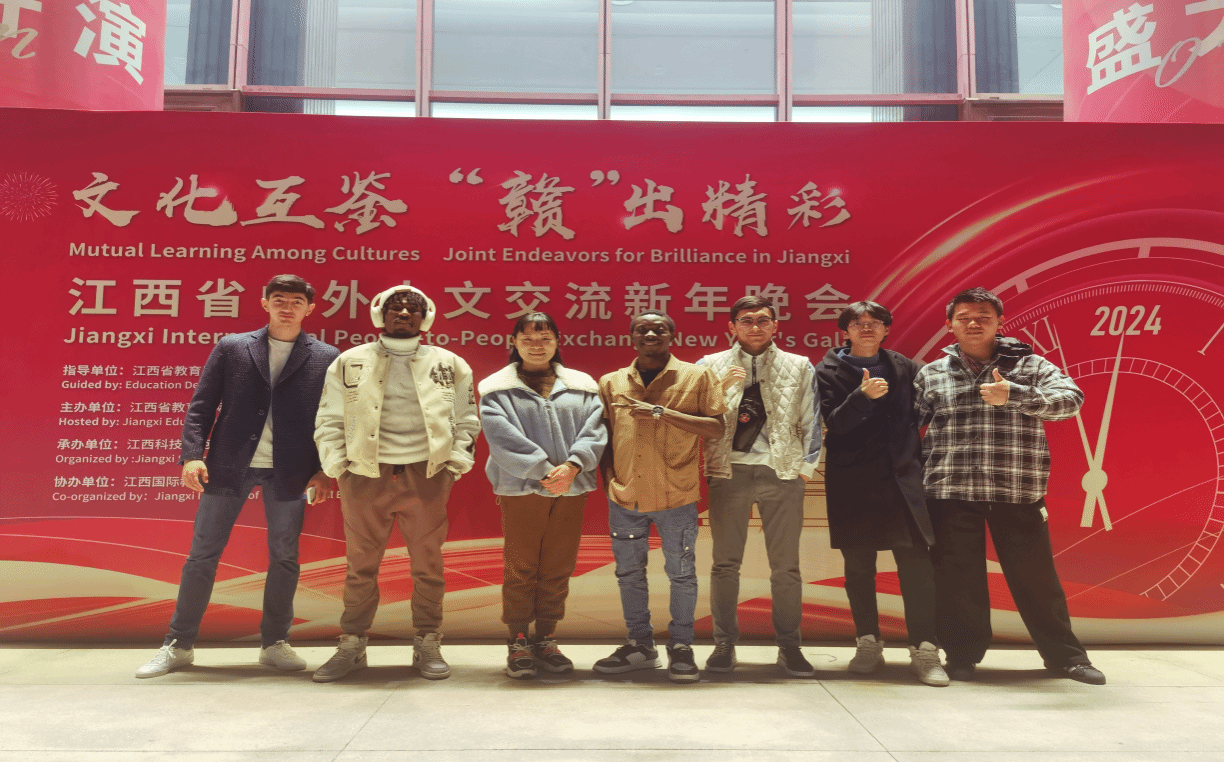 12月29日,我校6名中外学生代表和相关教师参加了2023年江西省中外人文交流新年晚会,与省内27所高校的300余名中外师生共同辞旧迎新。