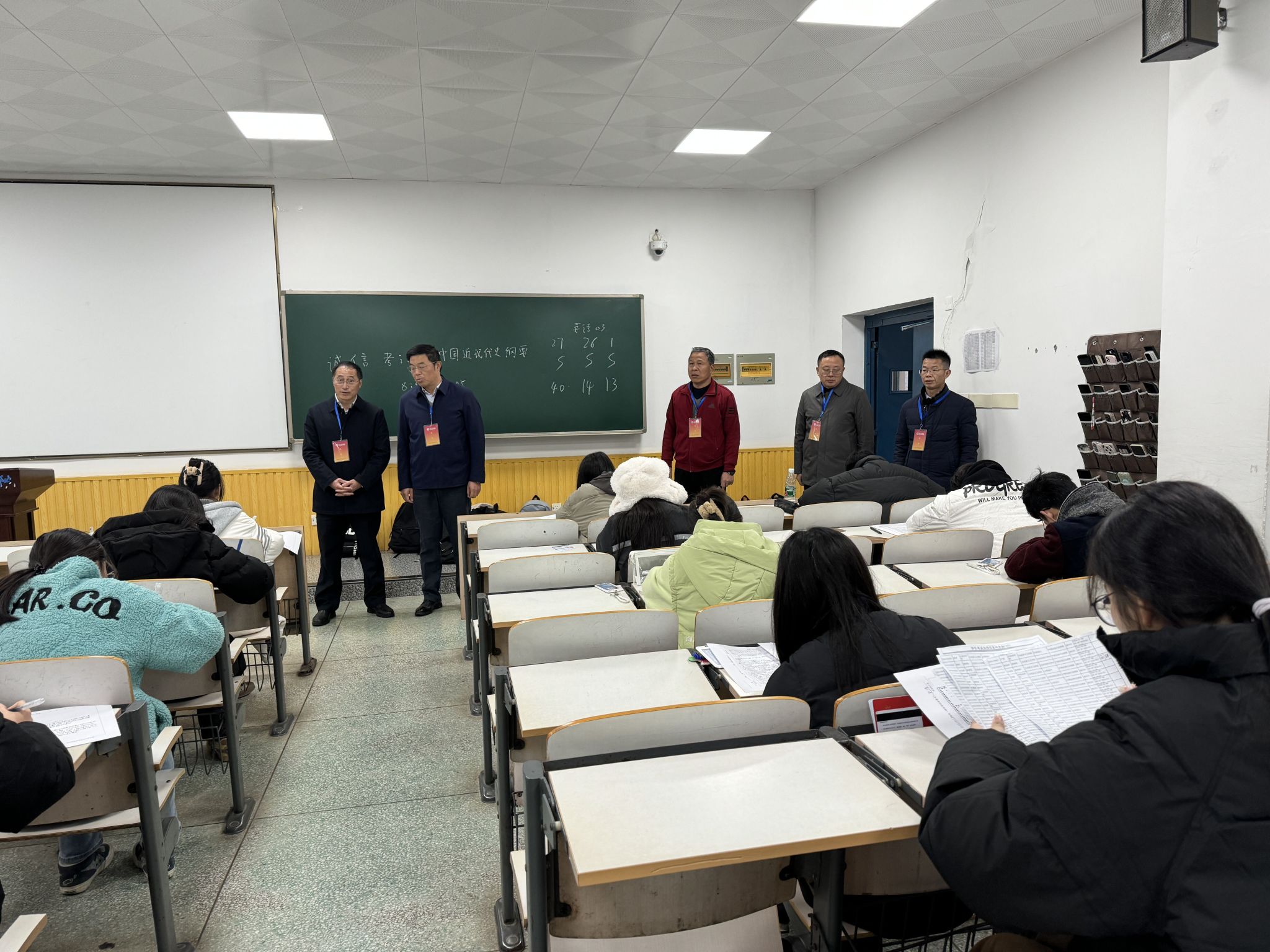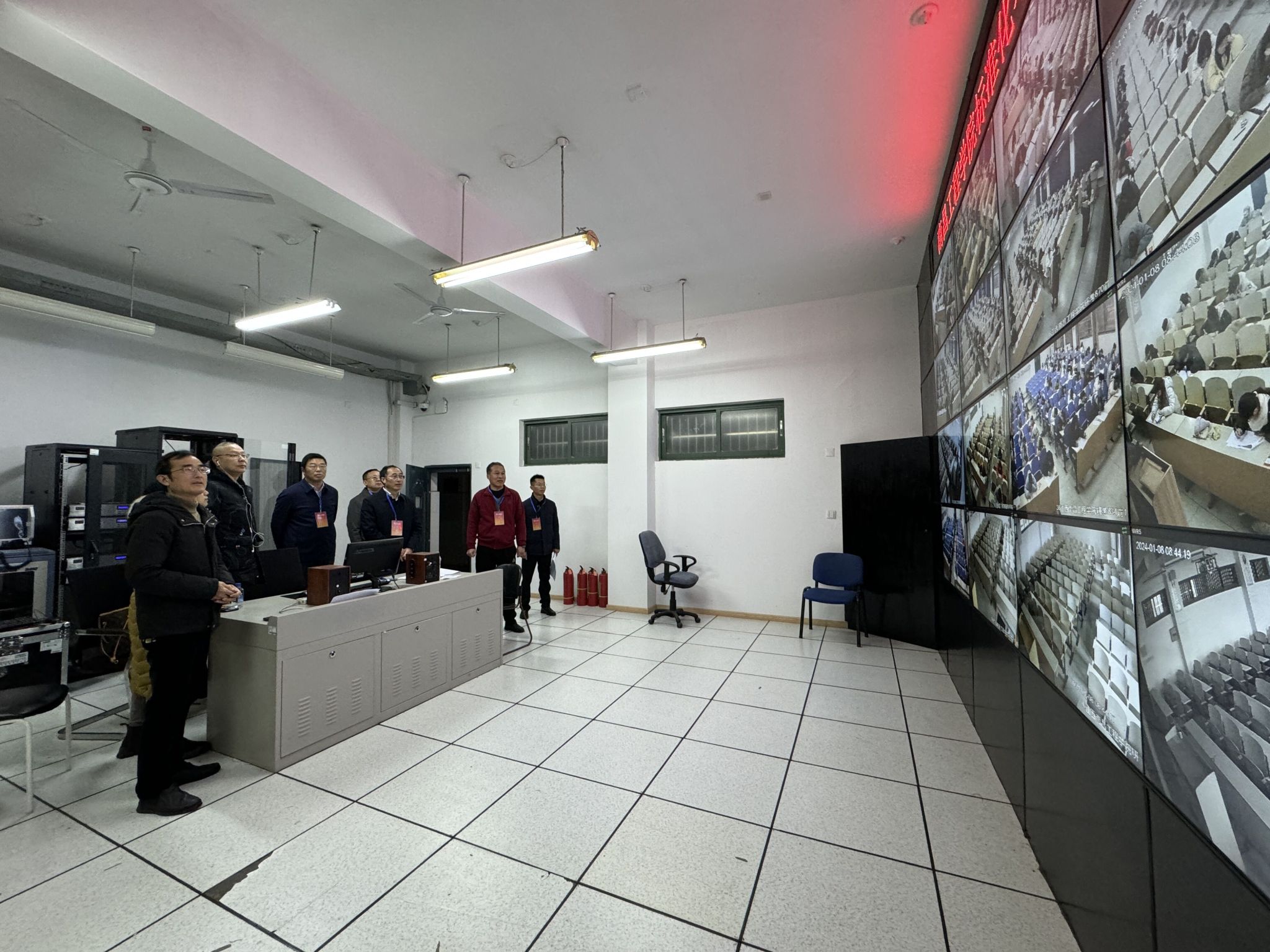 1月8日是本学期期末考试第一天,校长刘祖文、副校长陆伟锋来到考试现场巡视检查,教务处、学工处负责同志参加。