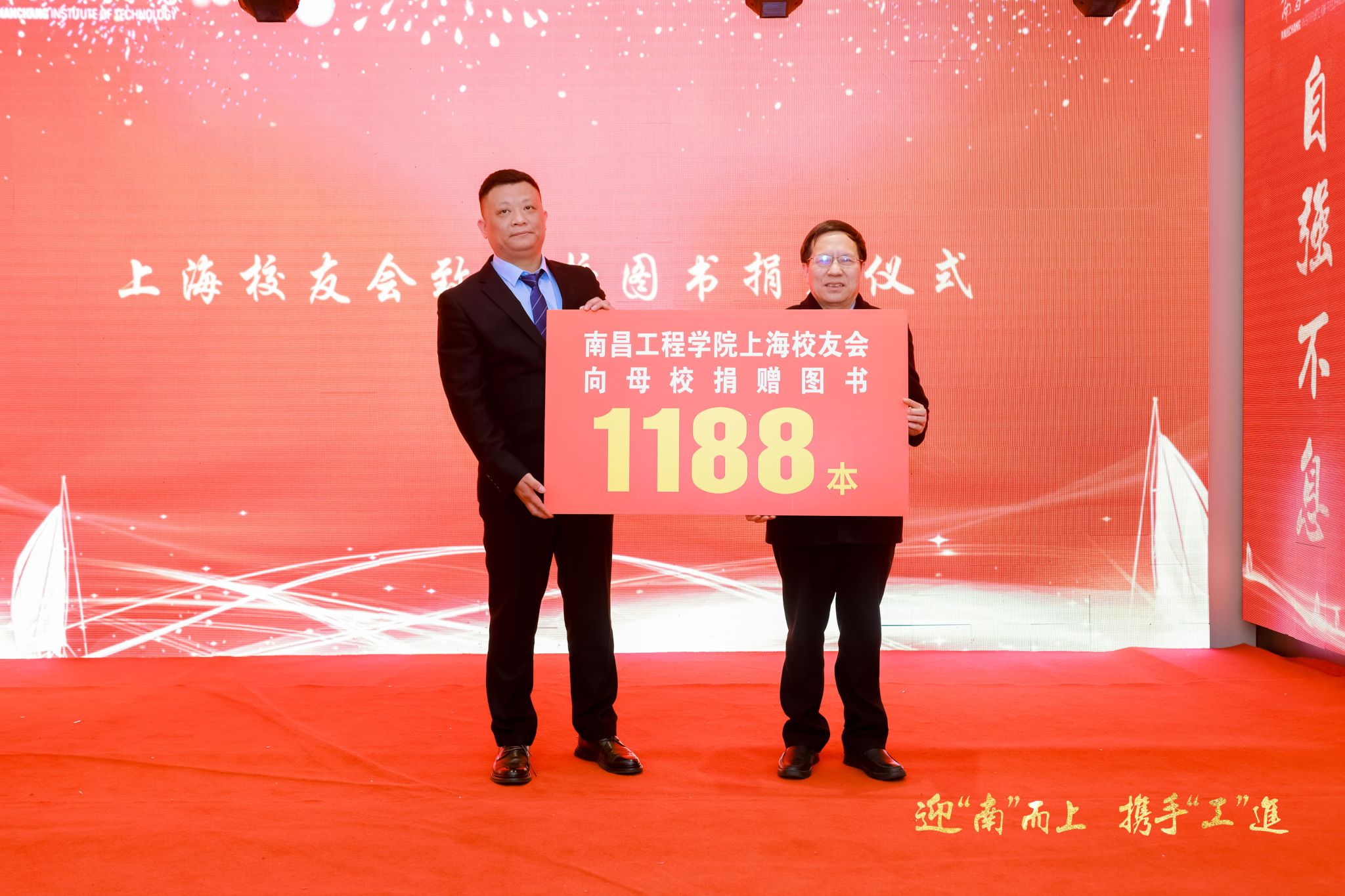 期间,会议还举行了图书捐赠仪式,上海校友会为母校捐赠图书1188册。