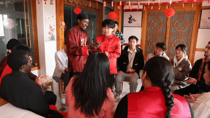 1月12日,我校2024年留学生春节文化体验日活动顺利举行,来自加纳、尼日利亚、乌兹别克斯坦和蒙古等国的同学们与中国师生欢聚一堂,共同体验魅力春节。副校长李培生、国际教育学院负责人参加活动,与大家亲切互动。