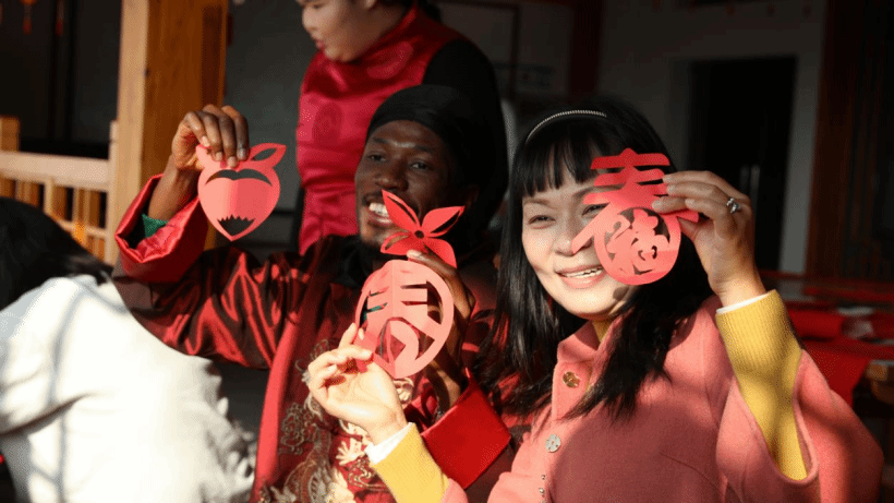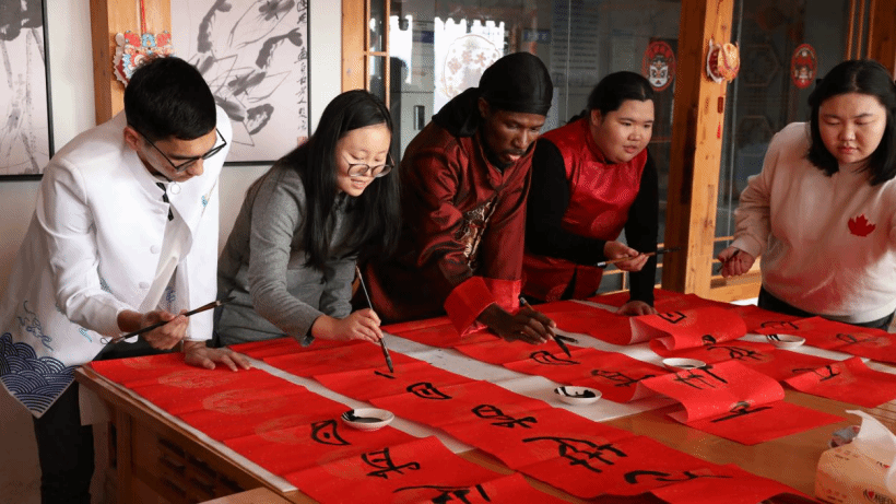 在写对联、剪窗花的活动中,留学生们与大家一同感受中国传统艺术的韵味。汉字飞花令和唱中文歌曲等环节让留学生们在欢声笑语中进一步领略中华优秀传统文化的深厚底蕴。大家还一起品尝美味汤圆,让节日过得甜滋滋又喜庆满满。