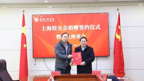 在捐赠仪式上,上海校友会为母校捐赠人民币6万元用于学校建设发展。汪胜前向上海校友会代表颁发捐赠证书。