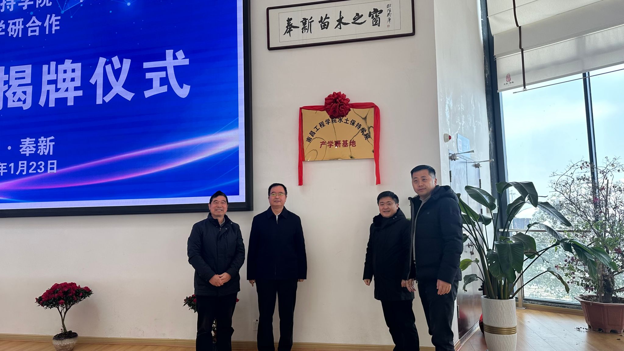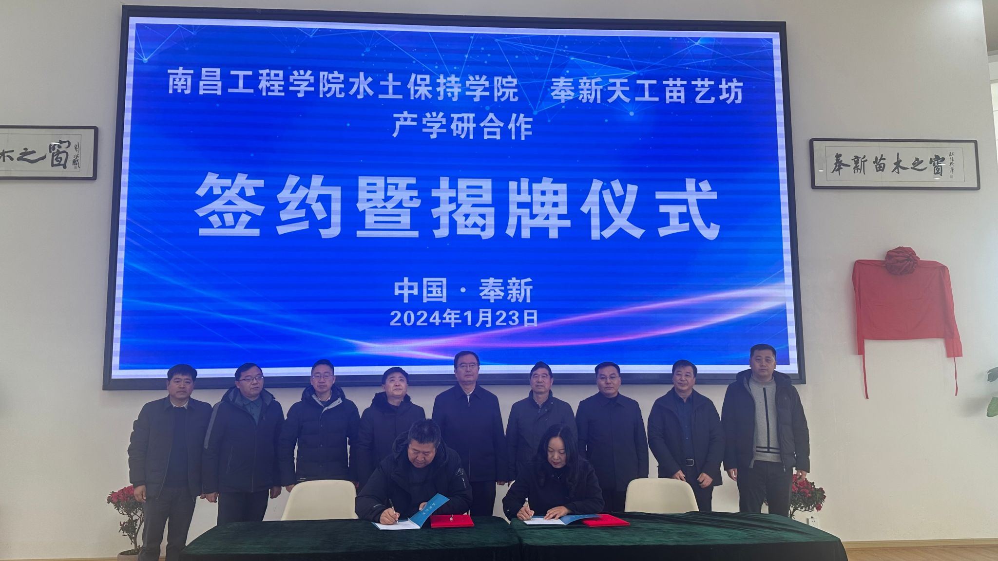1月23日上午,我校水土保持学院与奉新天工苗艺坊产学研合作签约暨揭牌仪式在奉新县会埠镇举行。江西省政法委副书记翟少勇出席活动并为产学研合作基地揭牌。校党委副书记吴泽俊在仪式上发表讲话并进行了访企拓岗活动。