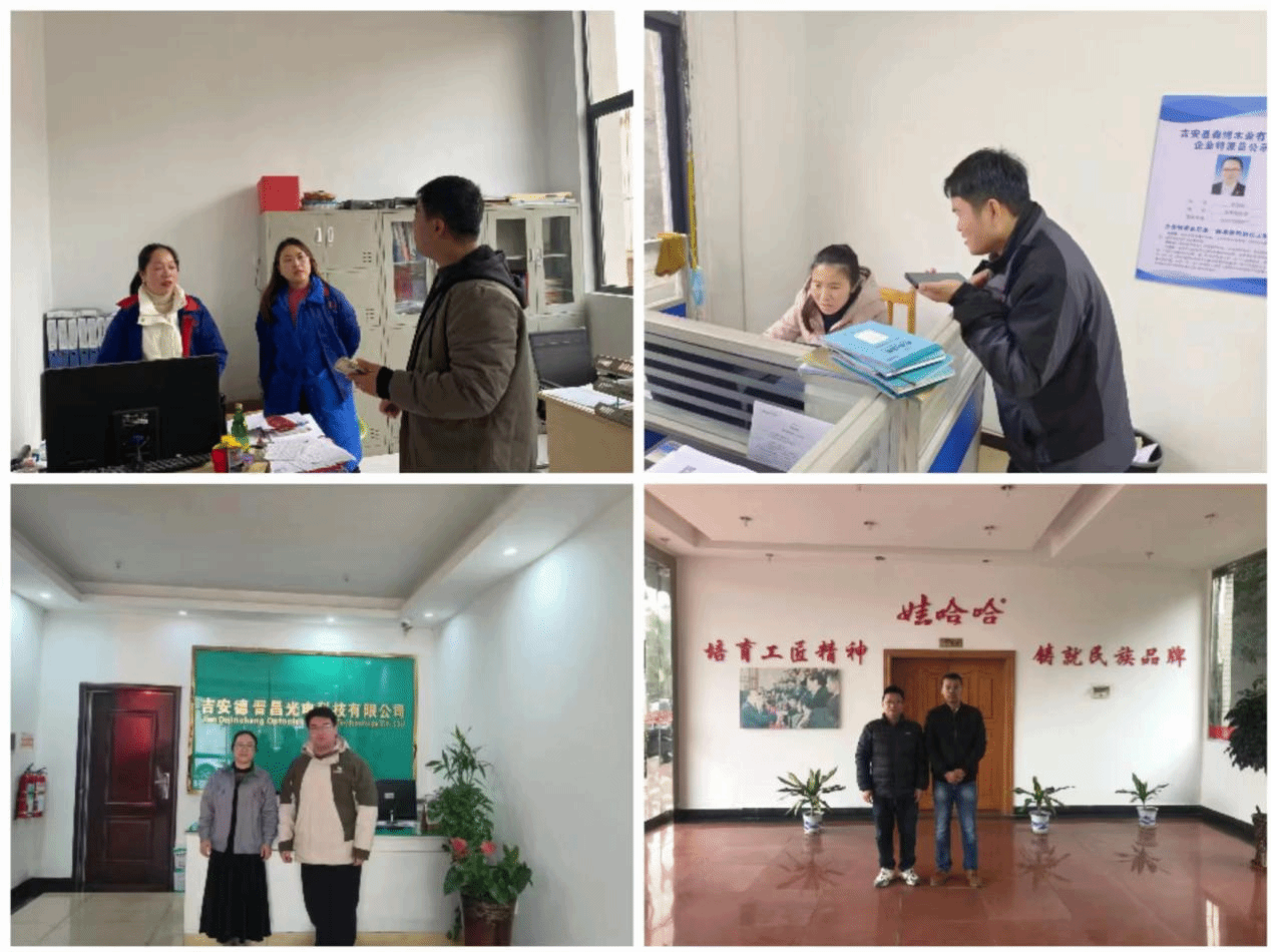 1月18日上午,学校招生就业处联合教育厅就业专班、吉安高新区管委会、吉安县就业创业服务中心,赴吉安国家高新技术产业开发区开展“1+1+N”结对共促毕业生就业工作,推动我校毕业生就业需求与园区岗位精准对接,助力毕业生实现更高质量更充分就业。各二级学院就业工作同志和毕业生20余人在园区分片走访企业,介绍我校人才培养情况和毕业生专业构成,了解企业用人需求。当天走访用人单位37家,现场协助31家单位在江西省大学生就业服务平台完成注册。