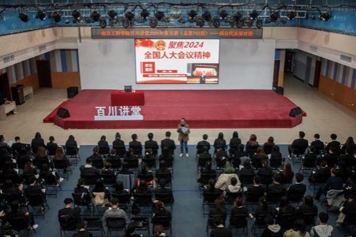 3月22日,由校团委主办的2024年百川讲堂第五讲(总第743期)在新时代文明实践中心(大学生活动中心多功能厅)开展,全国人大代表、校教师发展与服务中心主任彭聪受邀作全国两会精神专题报告,第十六期大学生骨干培训班全体学员参加会议。