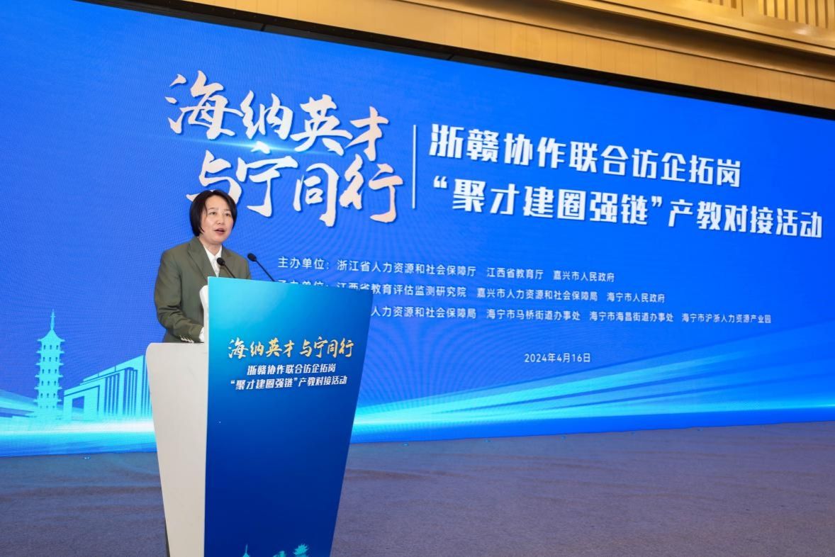 4月16日上午,浙赣协作联合访企拓岗产教对接活动在海宁举办。江西教育评估监测评估院党委书记刘静俭、浙江省人力资源和社会保障厅二级巡视员厉进、嘉兴副市长邢海华、我校副校长周敏丹、江西省38所高校代表和浙江省企业代表等齐聚一堂,“面对面”建起交流合作平台,进一步推动两地深度合作、产才协同发展、校企双向奔赴。