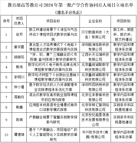 4月17日,《教育部高等教育司关于公布2024年第一批产学合作协同育人项目立项名单的通知》发布,我校共有22个项目成功获批立项,立项类别涵盖“新工科、新医科、新农科、新文科建设”“教学内容与课程体系改革”“实践条件和实践基地建设”“创新创业教育改革”“师资培训”五个方面。