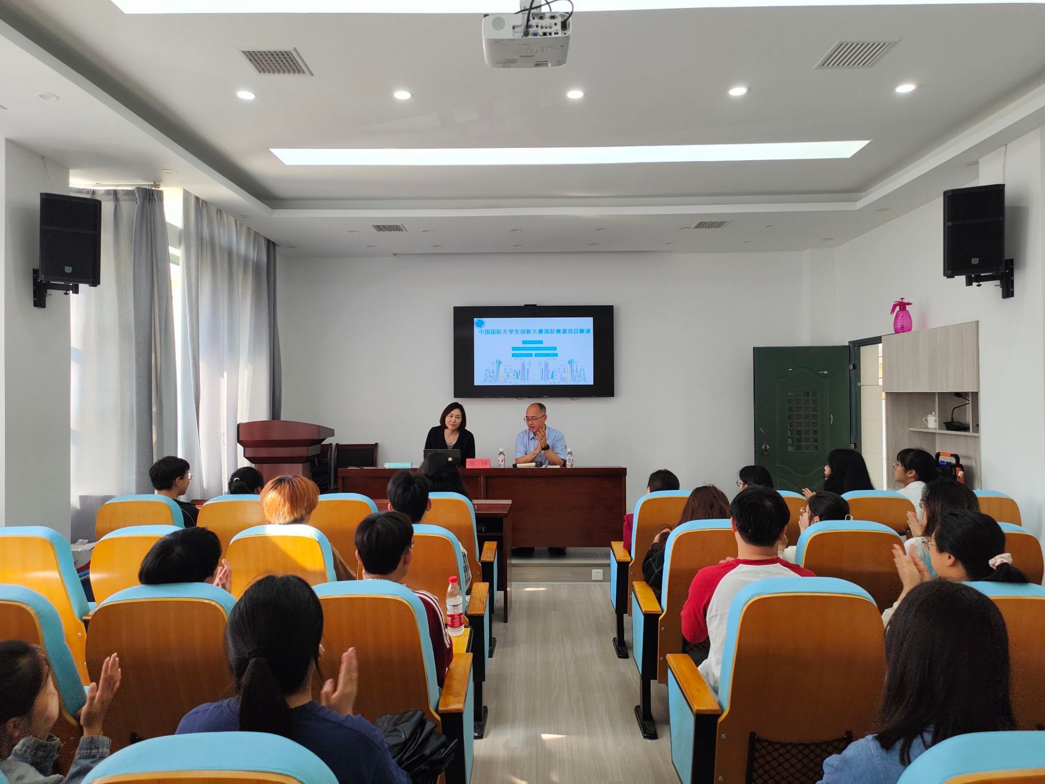 4月23日,我校中国国际大学生创新大赛国际赛道专题辅导会在崇德楼300会议室举行,进一步激发我校师生参与中国国际大学生创新大赛(2024)的热情,提高学校师生对中国国际大学生创新大赛国际赛道规则的了解。江西外语外贸职业学院创新创业教育办公室(创业学院)主任(院长)周玮教授来校交流,国际赛道各项目负责人和学生共100余人参加。