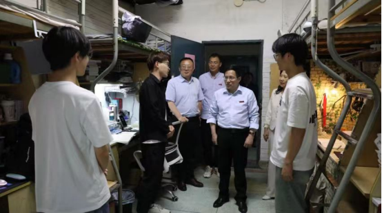 在“五一”假期来临之际,校党委书记汪胜前带队深入学生宿舍走访慰问,并开展安全检查。