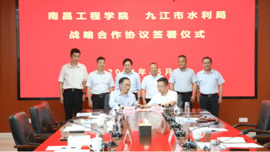 校党委副书记、校长刘祖文代表学校与九江市水利局签署《南昌工程学院 九江市水利局战略合作协议》。