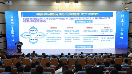 在院士论坛环节,王浩、钮新强、周创兵分别作《国家水网与双T型水网经济格局》《国家水网构建与鄱阳湖区水网建设探讨》《生态文明与水利工程建设》主旨报告。