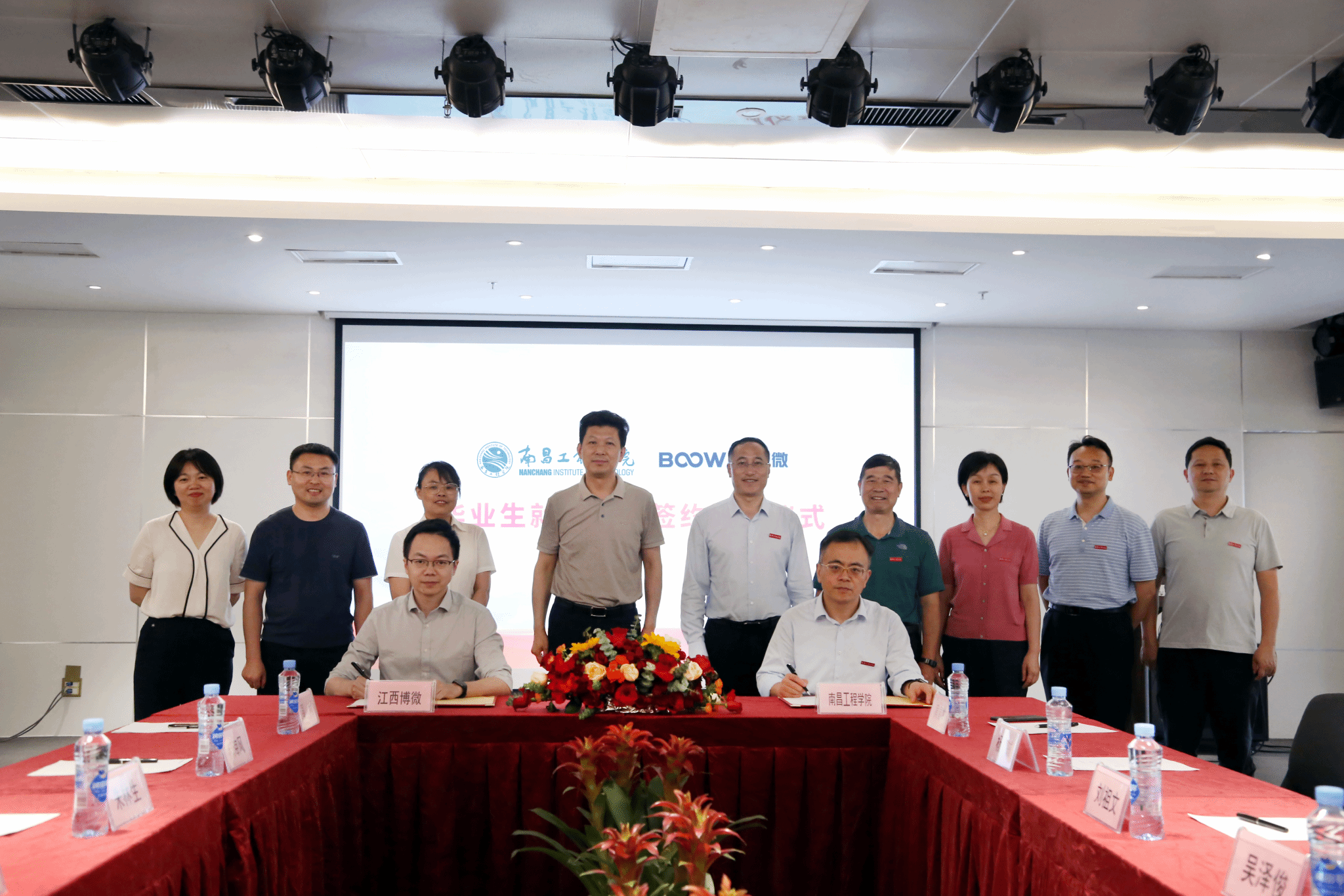 5月29日,校长刘祖文、校党委副书记吴泽俊走访江西博微新技术有限公司并开展访企拓岗专项行动。公司总经理朱林生(1990级水利工程经营管理专业校友)热情接待母校老师一行。招生就业处、校友服务中心、信息工程学院相关负责同志和2024届毕业生代表、公司高管及部分校友参加。
