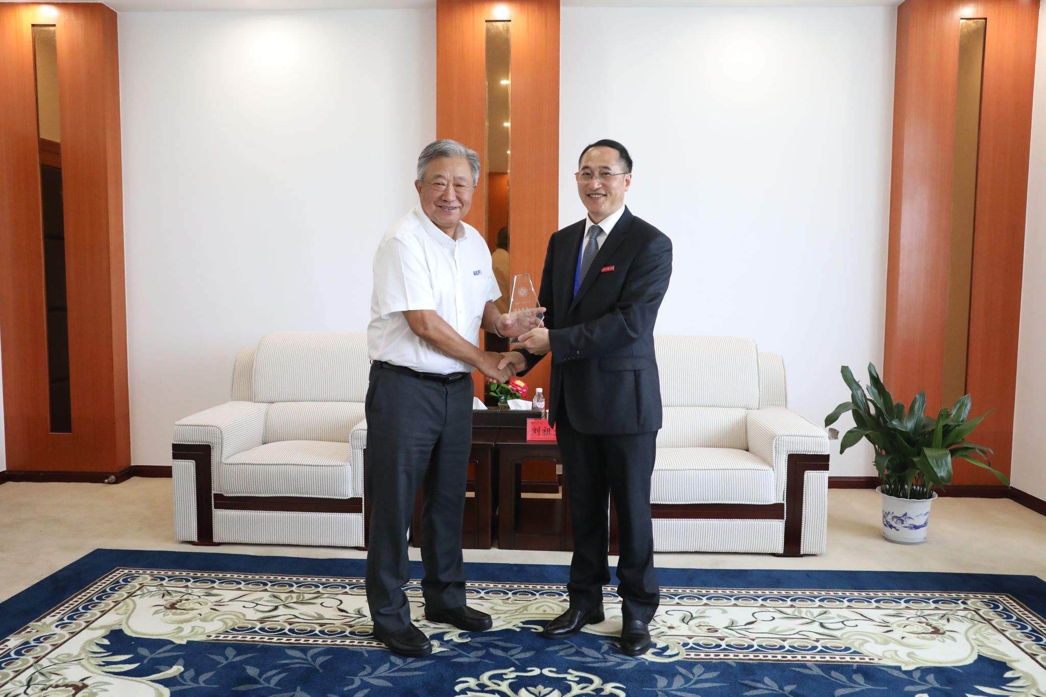 范庆伟对汪胜前、刘祖文拨冗会见表示感谢,希望设立“青岛伟隆阀门”奖学金能鼓励更多同学热爱专业、提升综合能力,乐于奉献、回馈社会。