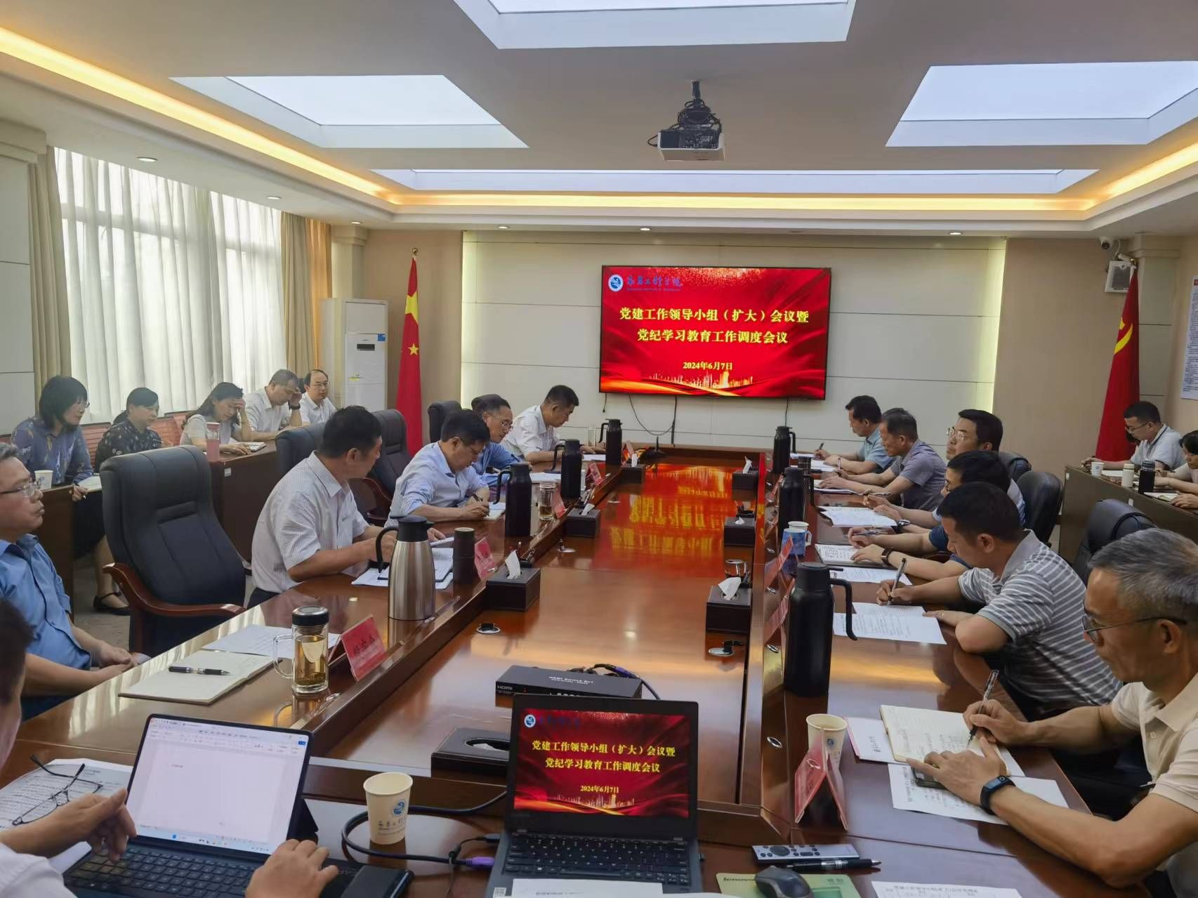 6月7日下午,学校在行政楼300会议室召开党建工作领导小组(扩大)会议暨党纪学习教育工作调度会,校党建工作领导小组组长、党委书记汪胜前出席并讲话,校党委副书记、校长刘祖文及党建工作领导小组成员、各二级党组织负责人参加,校党委副书记吴泽俊主持。