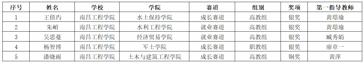 近日,由江西省教育厅主办的首届江西省大学生职业规划大赛落下帷幕。我校5名参赛同学全部获奖,荣获银奖4项、铜奖1项。其中,2022级风景园林专业王僖玙、2022级现代通信技术(火箭军)专业杨智博获成长赛道银奖,2021级水利水电工程专业朱頔、2021级审计学专业吴思蔓获就业赛道银奖,2021级城乡规划专业潘晓雨获成长赛道铜奖,获奖数量在同类高校中名列前茅。