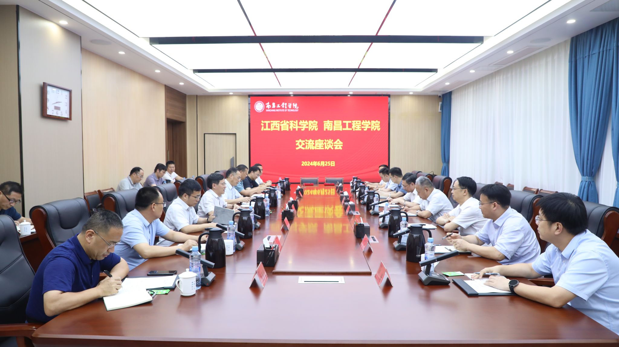 6月25日下午,江西省科学院党组书记、院长范小林,党组成员、副院长章国勇一行来校调研。学校在瑶湖会议中心第四会议室召开交流座谈会,校党委书记汪胜前出席会议并致词,校长刘祖文主持交流会,副校长贺丹君、卢全国及相关单位负责同志参加座谈。