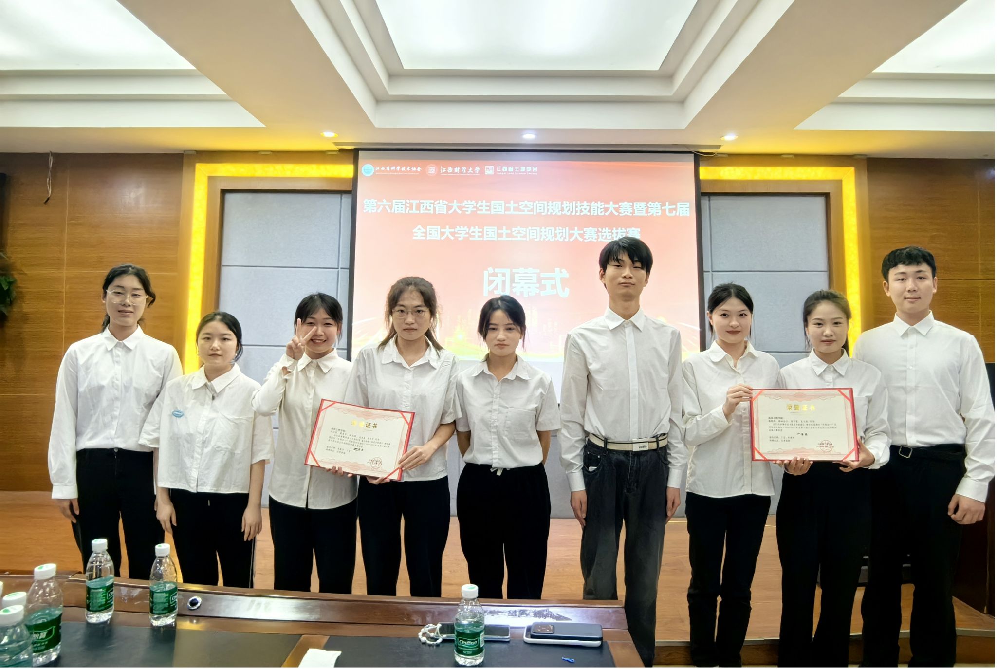 6月22日,2024年第六届江西省大学生国土空间规划技能大赛暨第七届全国大学生国土空间技能大赛选拔赛在江西财经大学圆满落幕,我校城乡规划专业学生表现出色,荣获一等奖1项、二等奖1项及三等奖8项,其中,由丁芸、朱燕芳老师指导,2021级城乡规划(五年制)潘晓雨等四位同学参与的《蔓草悠悠·湖光熠熠-南昌市新建区樵舍镇蔓湖村“多规合一”实用性村庄规划》、2021级城乡规划(五年制)刘兰星等五位同学参与的《古韵悠雪·逸乐游舫-南昌市新建区樵舍镇雪舫村“多规合一”实用性村庄规划》分获一、二等奖。
