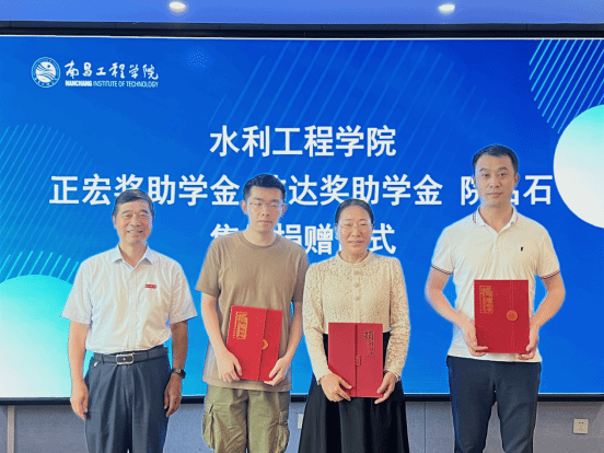 6月27日下午,正宏奖助学金、伟达奖助学金、水利工程学院院名石集体捐赠仪式举行。校长刘祖文,校党委副书记吴泽俊,正宏奖助学金捐赠代表郑克红,院名石捐赠代表田晔、李兵、王磊、吴邦彬出席活动,校教育发展基金会、水利工程学院、学生工作处学生资助管理中心的负责同志和师生代表参加活动。