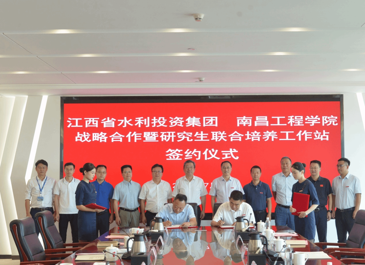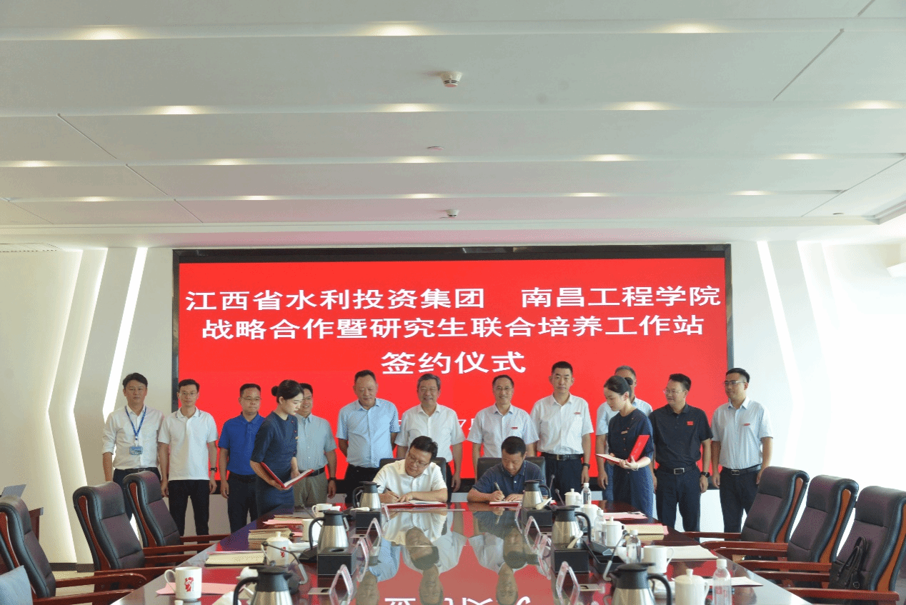 7月9日,校长刘祖文,副校长李培生、卢全国带领教务处、科学研究处和研究生院负责人一行前往江西省水利投资集团有限公司签订合作协议。省水投集团党委书记、董事长邹洪,党委委员、财务总监王诤,党委委员、副总经理廖小春,总经理助理吴海真,办公室、人力资源部、江河信息等单位负责人参加座谈并出席签约仪式。