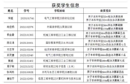 近日,江西省大中小学生游泳比赛在上饶市婺源县举行,省内20所高校6所中小学的327名运动员参加。我校10名参赛运动员在赛场上发挥坚韧不拔、奋勇拼搏的精神,面对强劲的对手毫不畏惧,凭借着出色的技巧和顽强的毅力劈波斩浪,在十五个参赛项目中全部获奖,斩获本科甲组团体总分第三名及单项银牌1块、铜牌5块的佳绩,程鹏老师荣获“优秀教练员”称号,2020级自动化专业宋超同学获“体育道德风尚奖运动员”称号。