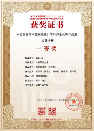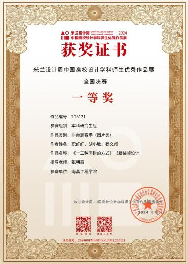 7月27日,第八届米兰设计周-中国高校设计学科师生优秀作品展颁奖典礼在同济大学落下帷幕。大赛设立29个分赛区,共1275所高校参赛,征集作品15.4万件。人文与艺术学院积极组织学生参赛,并取得了国赛获奖8项,省赛获奖49项的好成绩,我校荣获“优秀组织奖”。2023级艺术设计研究生职纤纤团队作品“《十三种闻树的方式》书籍装帧设计”和2021级环境设计专业刘欣阳团队作品《钢铁绿韵园区》在全国总决赛中获得国家级一等奖;2023级艺术设计研究生李梦娟、2021级环境设计专业廖红塔、2022级产品设计专业陈阳烁等团队的3项作品获得国赛二等奖;2022级产品设计专业周蒙、2022级产品设计专业邹家威、2023级艺术设计研究生胡小敏等团队的3项作品获得国赛三等奖。教师张朝霞、蔡琛、马川、段鹏程荣获“优秀指导教师”称号。