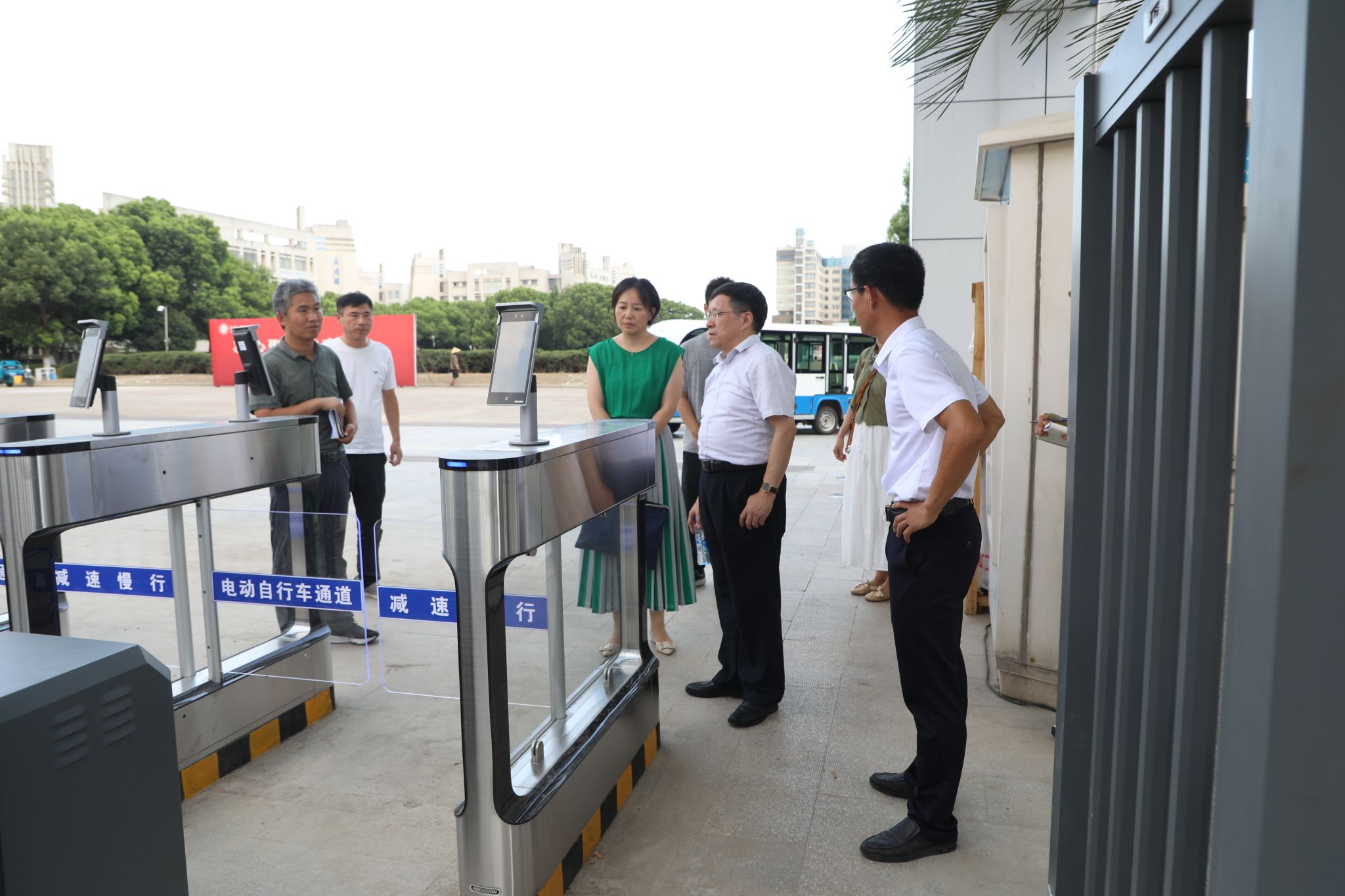 汪胜前一行前往润园、沁园和超市,检查食品卫生安全及开餐准备情况,现场查看了食堂从业人员健康证和“互联网+明厨亮灶”平台,强调要加强从业人员安全教育和食堂内部规范管理,做好全方位、全流程监控,确保燃气安全和各类消防设施配备到位。检查组还前往学校西大门、北门、学生宿舍查看校园道闸及访客系统建设情况和学生公寓安全管理及开学初准备情况,对检查中发现的问题及可能存在的风险隐患进行了现场反馈,并提出整改指导意见。