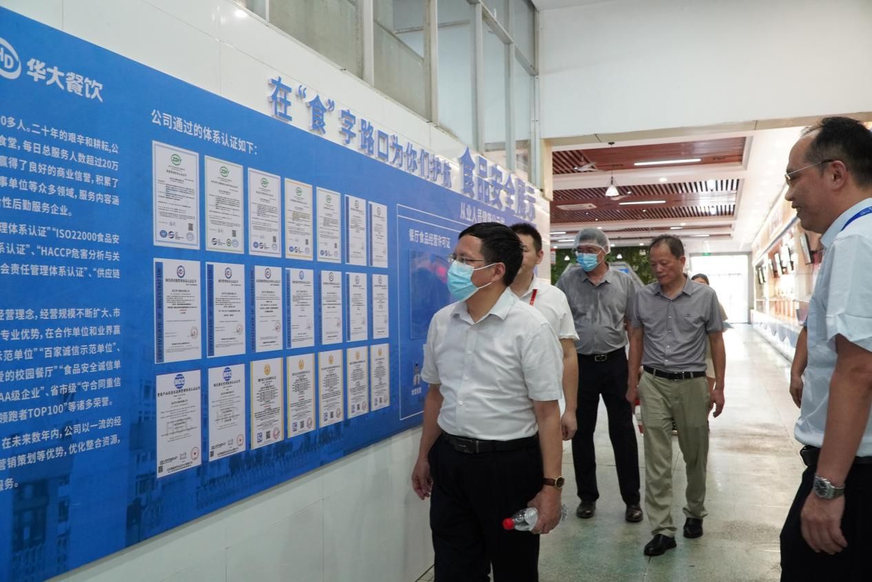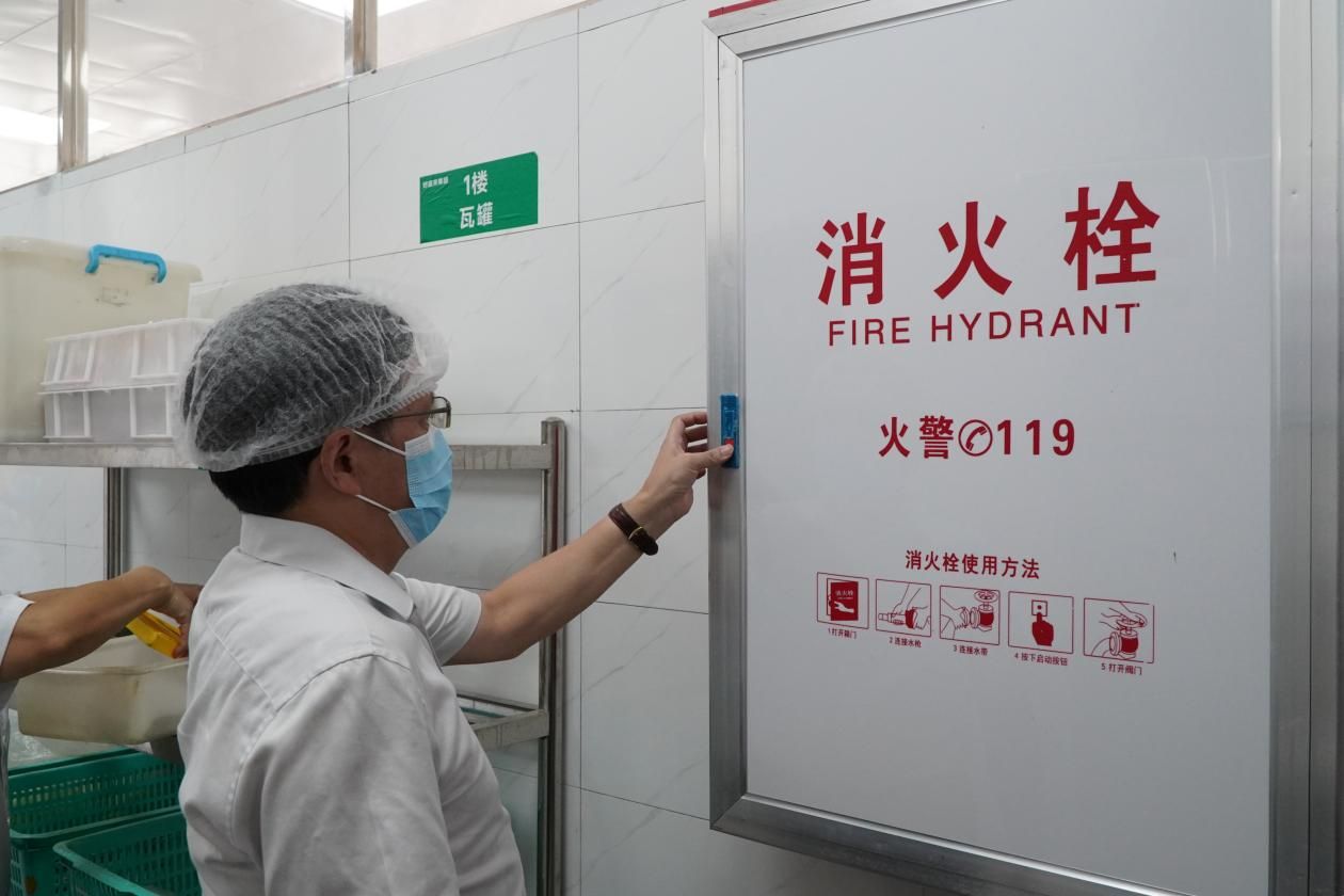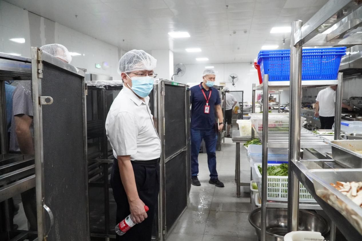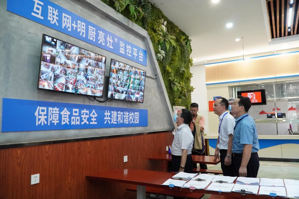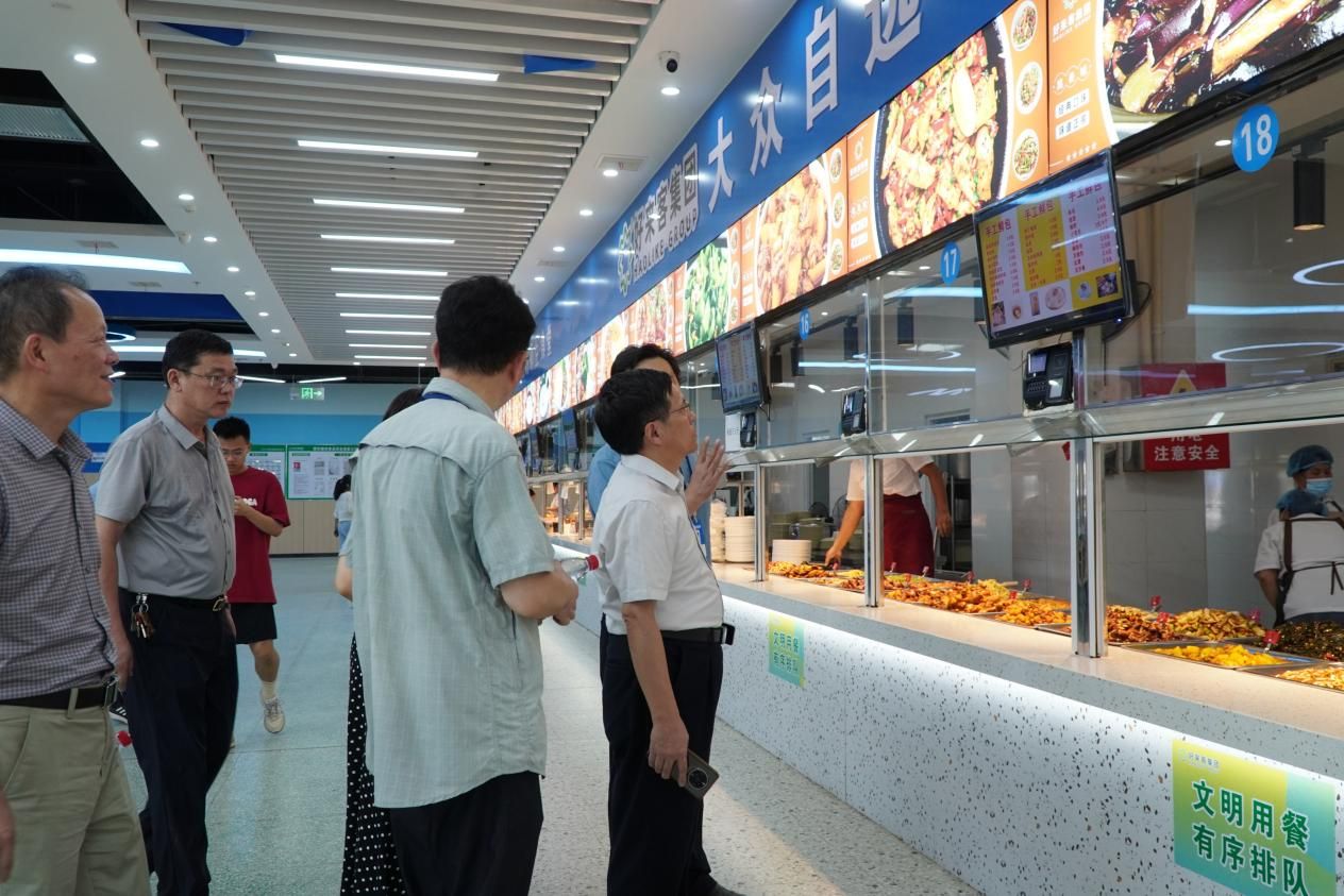 检查组一行深入食堂就餐大厅、后厨加工间,实地察看了食堂文化提升改造、“互联网+明厨亮灶”平台管理、环境卫生、菜品菜价、仓储物资管理、日常管理台账等;重点检查了物资采购、食材加工、食品留样、餐具厨具清洗消毒、虫鼠害防控、消防设施配备等关键环节;详细了解了食品安全日常监督管理落实的常态化举措。