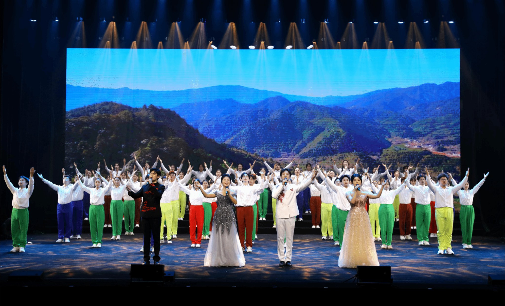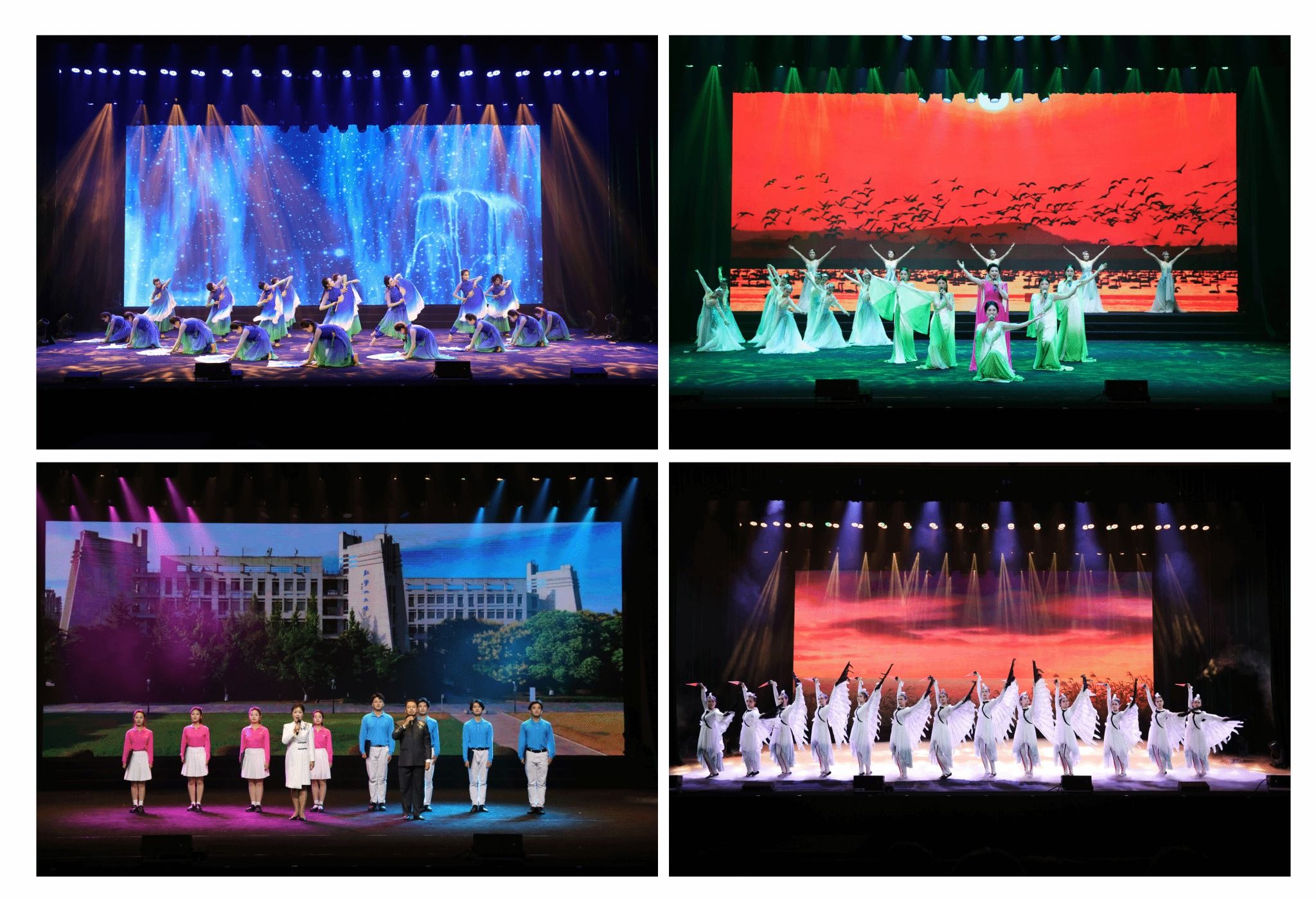 主题音舞诗画《赣鄱流韵长》是我校师生经历几年淬炼的思政大课,现已在舞台上能够日趋成熟地诠释出赣鄱水文化的美学思想与技艺追求。整堂课以“鄱阳湖”为主线,分为“泽梦远兮”“浪潮壮兮”“鄱湖美兮”三个篇章共13个节目,通过音舞诗画的形式,讲述了鄱阳湖古往今来的发展历程,表达了一代又一代江西儿女对母亲湖的热爱与感激。