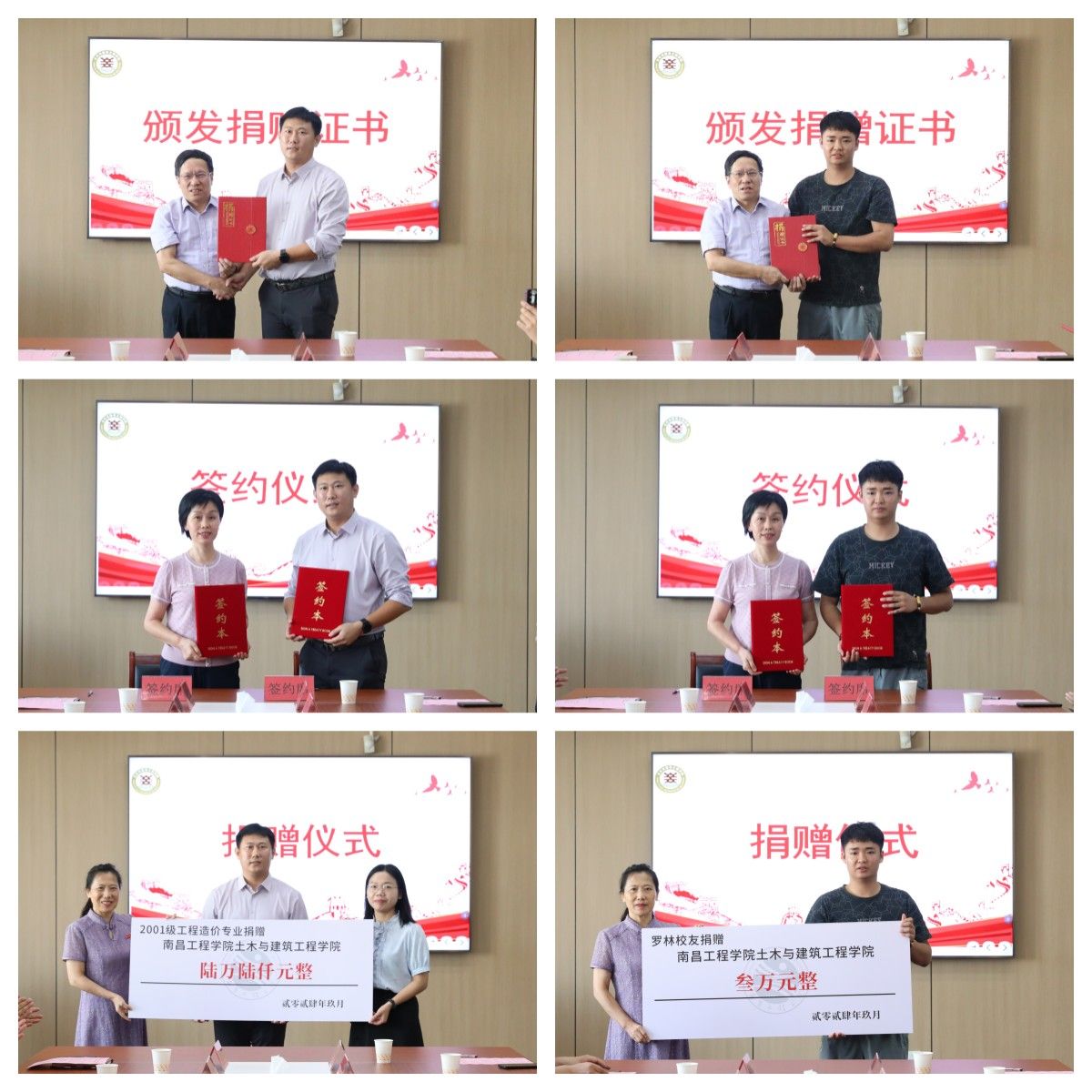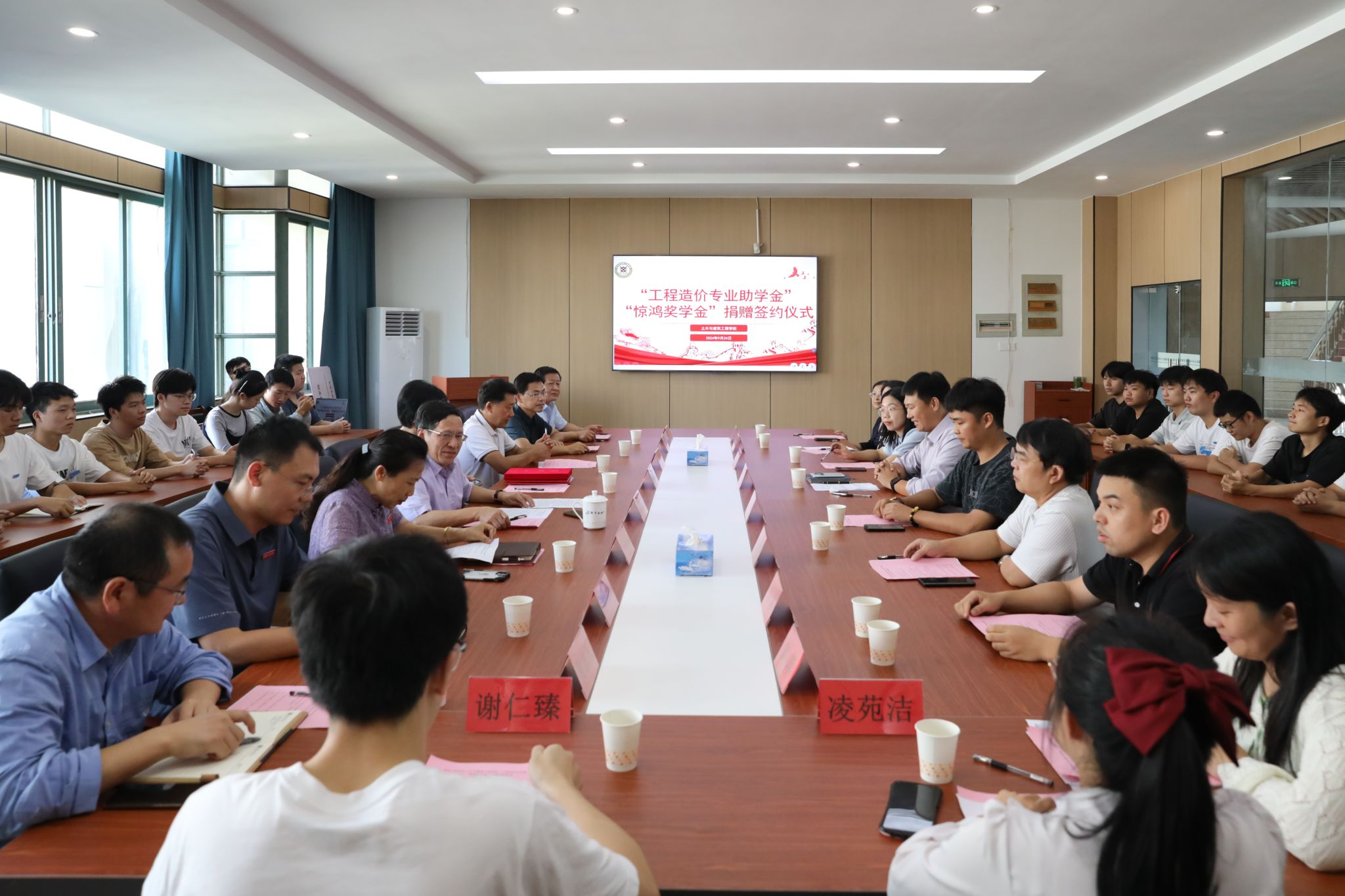9月24日,“工程造价专业助学金”“惊鸿奖学金”捐赠签约仪式在土建楼B313会议室举行,校党委书记汪胜前、南昌工程学院教育发展基金会负责人、2001级工程造价专业校友崔剑、周睿迪,2018级道路桥梁与渡河工程专业校友罗林、土木与建筑工程学院党政领导班子成员及师生代表共40余人参加。